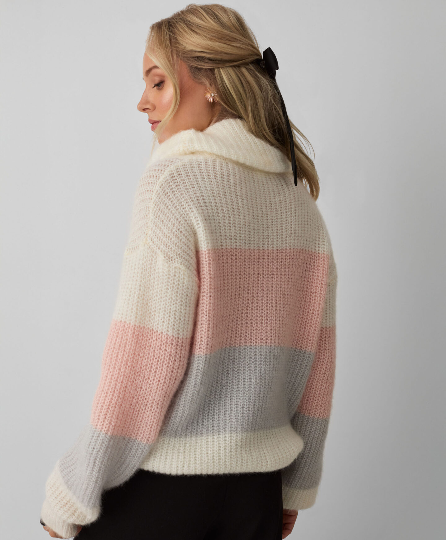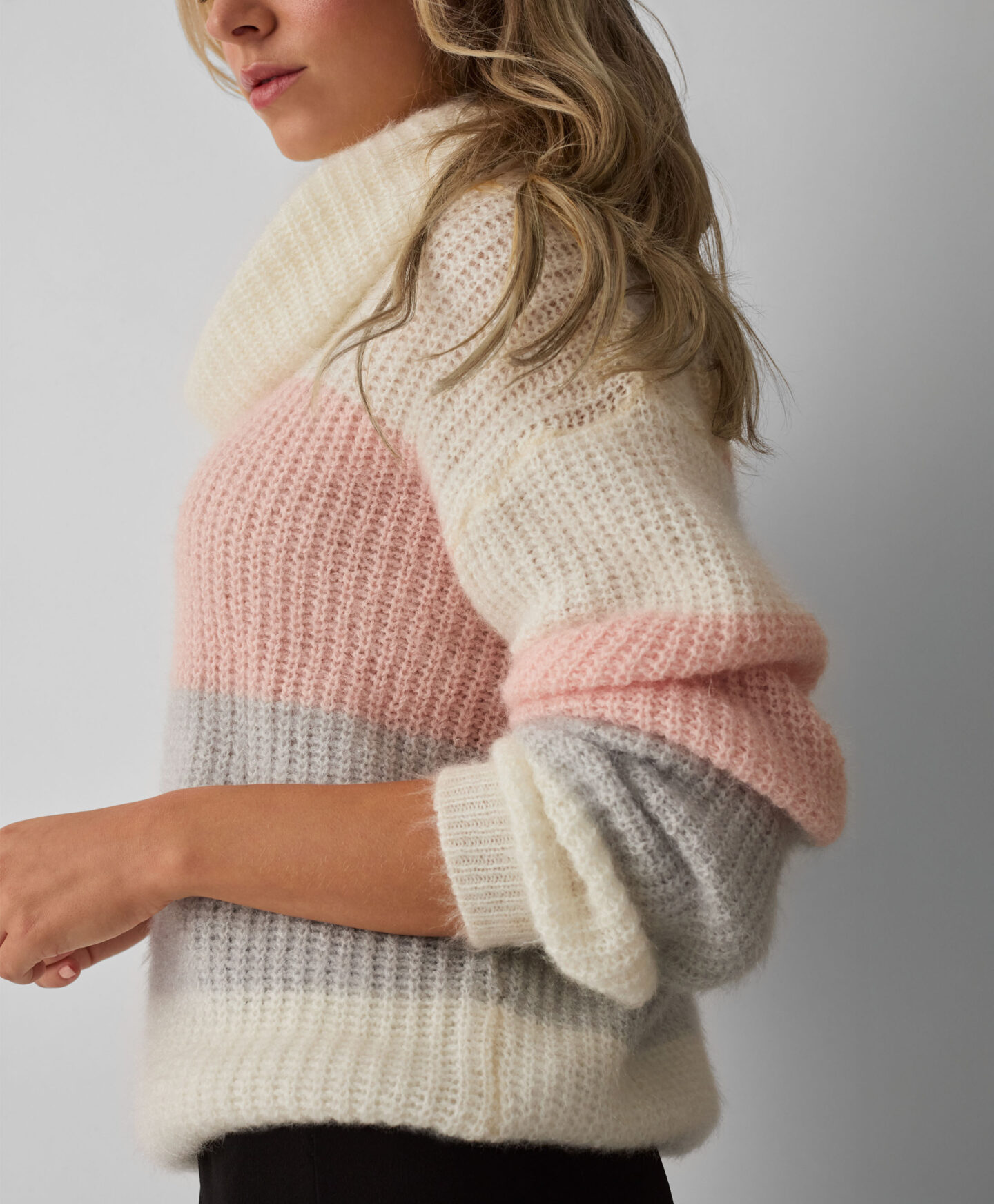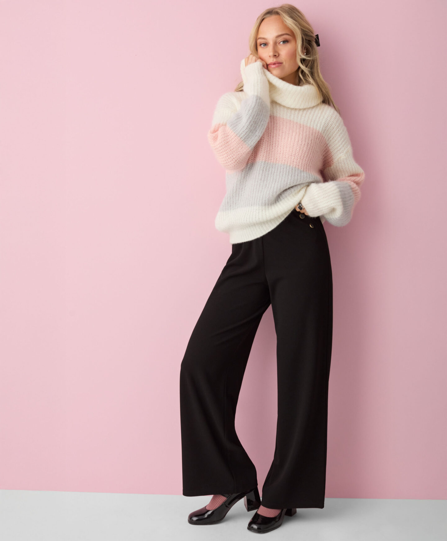 El jersey a rayas con cuello vuelto mantiene el calor en los días fríos. Su tejido cálido, suave al tacto y cómodo aporta una sensación agradable. Las rayas anchas en tonos pastel añaden un toque delicado. Queda ideal con vaqueros clásicos, pantalón de vestir o un look más deportivo.