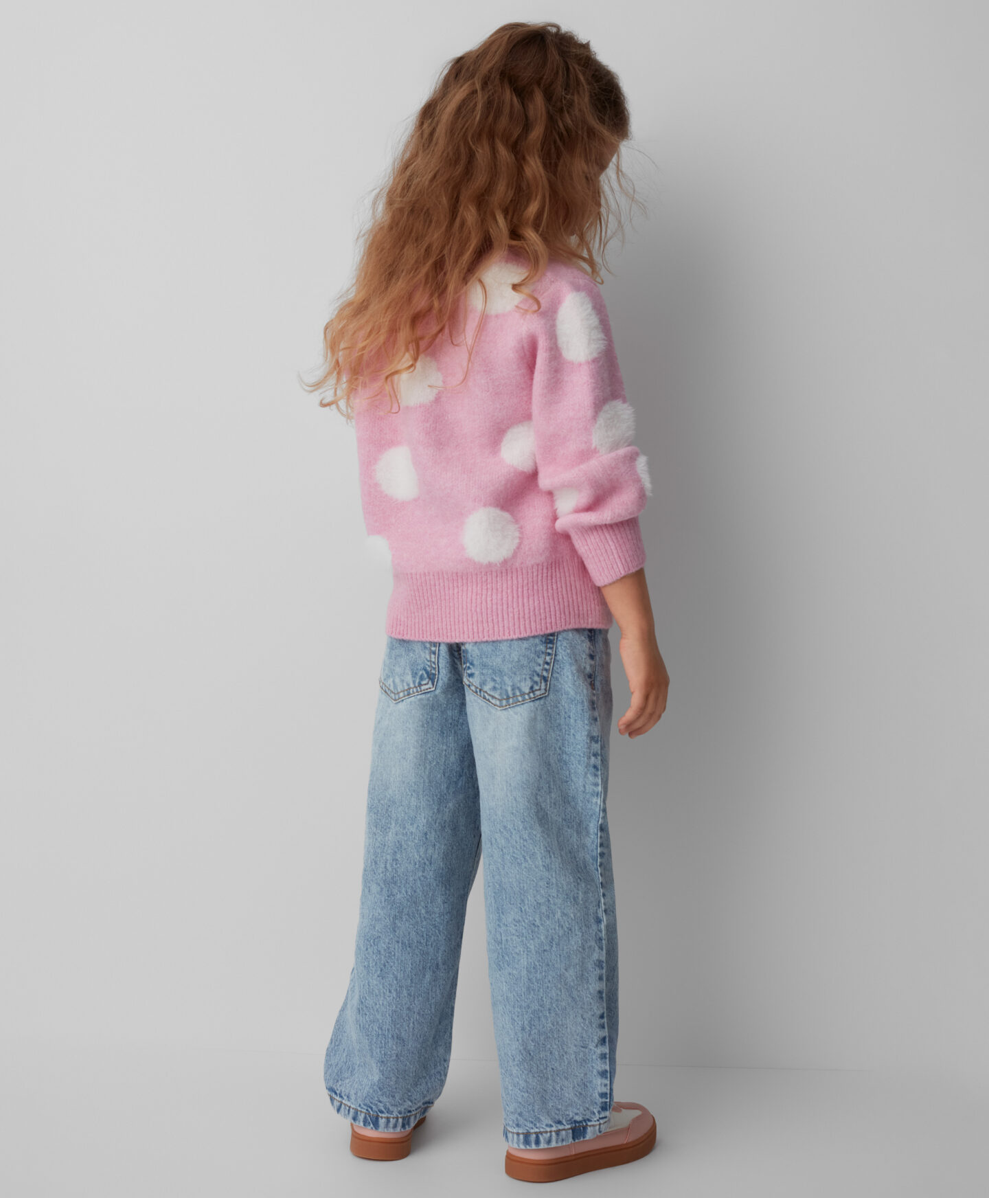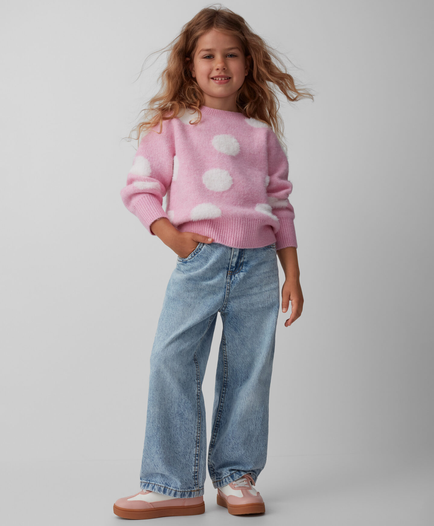 Este jersey con estampado de lunares es el básico perfecto para los pequeños amantes del rosa. Una prenda diseñada con un tejido suave y delicado, que además abriga en los días más frescos. Combínalo con vaqueros, leggings o falda, y consigue un look lleno de estilo para el cole o la guardería. ¡Está disponible en varios estampados!