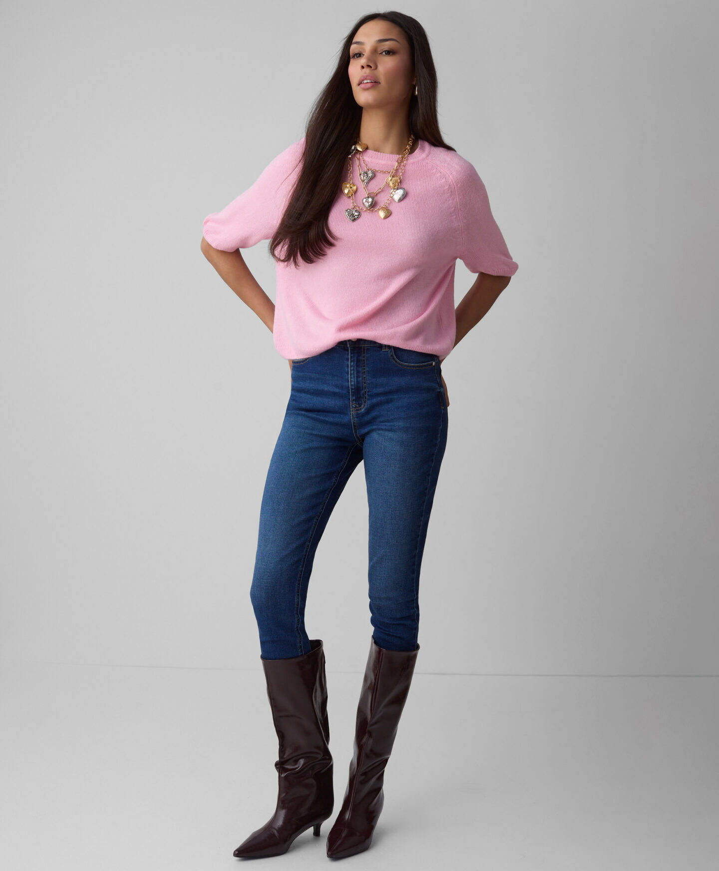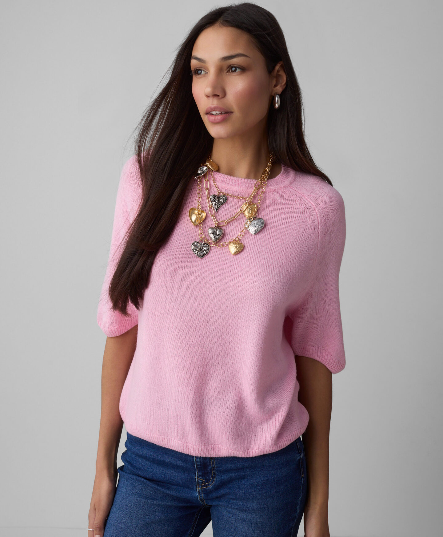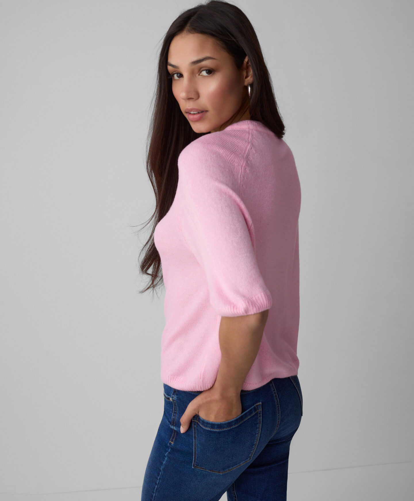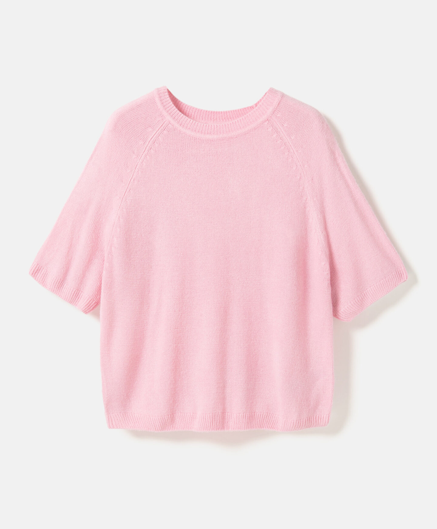 El jersey rosa con mangas raglán ofrece total libertad de movimiento. Combina con faldas, pantalones elegantes o vaqueros, creando un conjunto estiloso para cualquier situación. Disponible en dos colores.