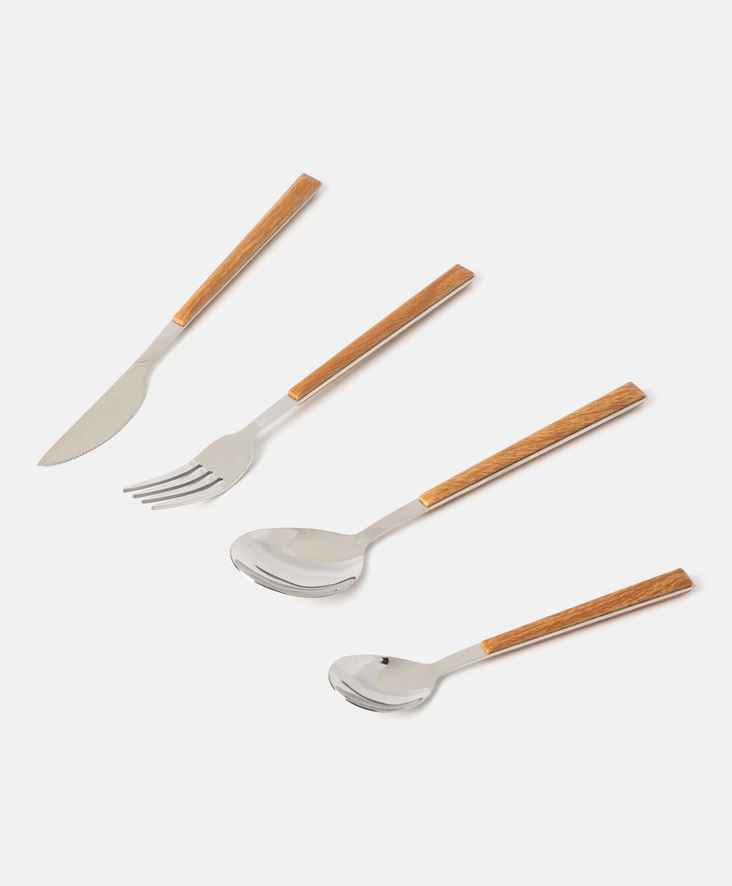 El juego de 16 cubiertos con mango efecto madera es perfecto tanto para el día a día como para ocasiones especiales. Los cubiertos de acero inoxidable son resistentes y fáciles de limpiar. El acabado efecto madera aporta un toque cálido y natural a la mesa. Incluye cuchillos, tenedores, cucharas y cucharillas para cuatro servicios completos.