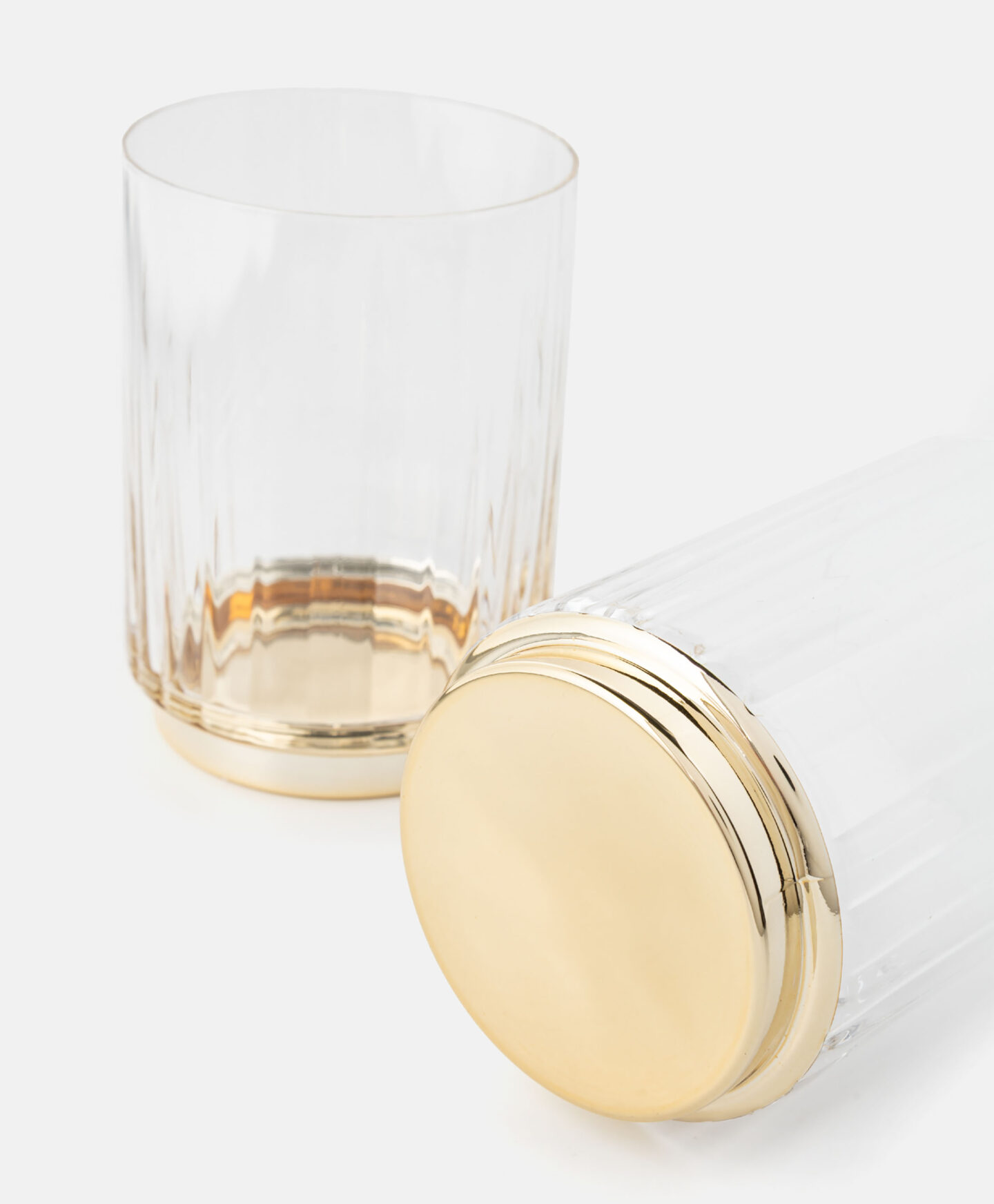 El juego de 2 vasos de vidrio es ideal para quienes valoran la elegancia en los detalles. El relieve del cristal aporta sofisticación y la base dorada añade un toque de sofisticación. Perfectos para ocasiones especiales y para el uso diario. Y están disponibles las copas de vino a juego.