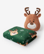 El kit de manta y cojín verdes se inspira en los colores clásicos de la Navidad. Su textura agradable garantiza confort, y el formato convertible en cojín lo hace cómodo y original. Un kit funcional y perfecto para regalar.