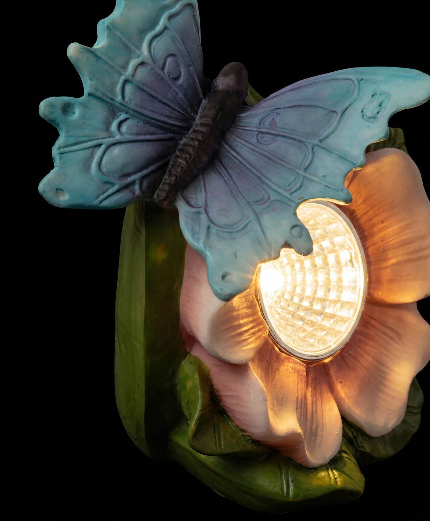 La lámpara solar en forma de flor con mariposa es una decoración única para el jardín. Alimentada por energía solar, gracias a un panel solar integrado, funciona sin cables ni baterías. El diseño primaveral, con una delicada flor y una mariposa, llama la atención, y la suave luz LED crea un ambiente mágico en cualquier jardín, balcón o terraza. La lámpara se enciende automáticamente al anochecer y se apaga al amanecer, proporcionando iluminación durante toda la noche sin necesidad de mantenimiento. Disponibles varios modelos en la oferta.
