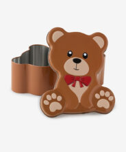 La caja metálica con forma de oso aporta calidez y ternura al hogar. Perfecta para guardar pequeños objetos o como adorno de mesa o estantería. Su forma simpática encantará a grandes y pequeños.