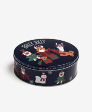 La lata redonda metálica en azul marino llama la atención con su alegre motivo navideño. Perfecta para guardar dulces, pequeños regalos o como envoltorio decorativo. Hace que cualquier detalle tenga un toque mágico. Disponible en diferentes versiones.