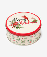 La lata redonda metálica roja es todo un clásico navideño. Con su mensaje festivo y detalles de invierno, convierte el almacenamiento de dulces o frutos secos en algo especial. Su diseño atemporal combina con cualquier decoración.