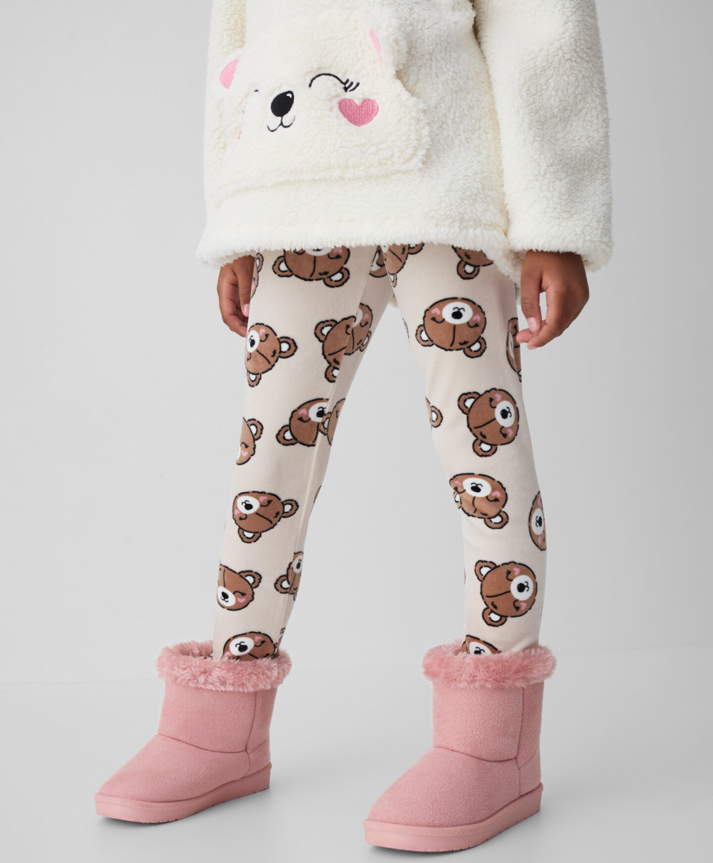 Los leggings de terciopelo con estampado de ositos, enamoran a todos los peques. Son cálidos y suaves al tacto, y el tejido elástico ofrece máxima comodidad. Son ideales tanto para casa como para paseos al aire libre o para ir a la guardería o al cole. Combinan de maravilla con una sudadera, un jersey o una camiseta de manga larga.