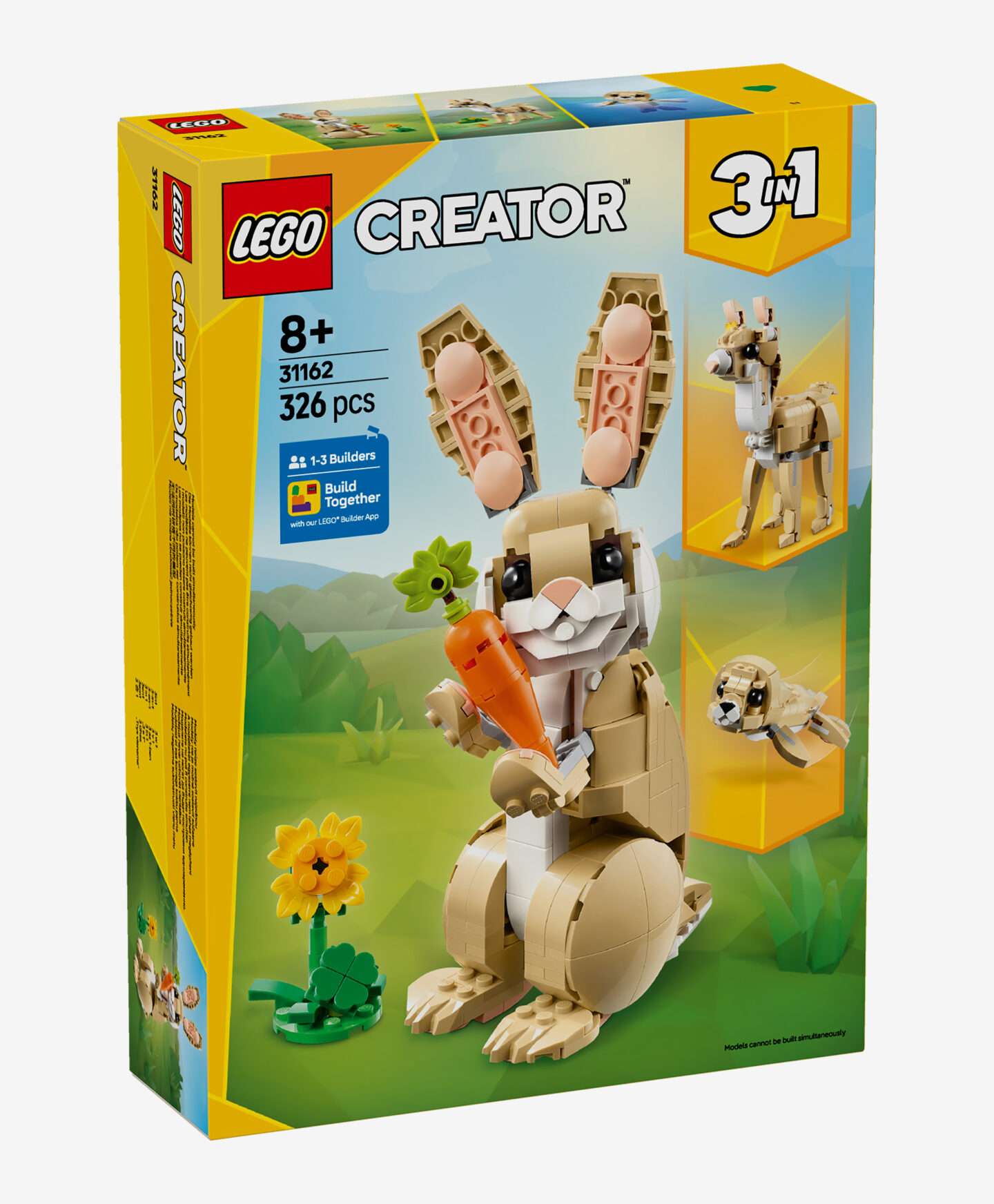 El kit LEGO® Creator 3 en 1 Conejito adorable ofrece tres formas de diversión. Con las mismas piezas se puede construir un tierno conejo con zanahoria, una simpática llama o una foca. Cada modelo propone un tipo de juego distinto, fomentando la creatividad y la experimentación.