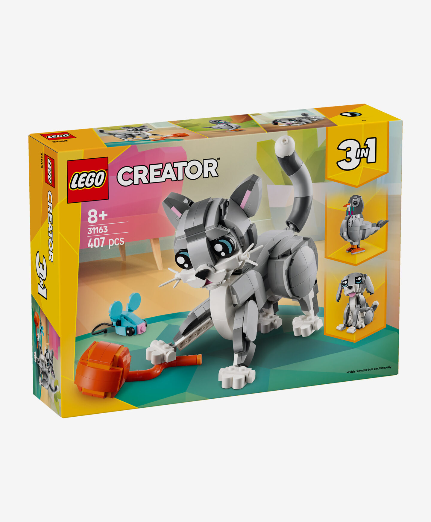 El kit LEGO® Creator 3 en 1 Gatito juguetón, inspira horas de juego creativo. Permite construir un gatito con un ratón, una paloma o un perro, dando lugar a nuevas historias en cada construcción. Perfecto para desarrollar la imaginación y la destreza.