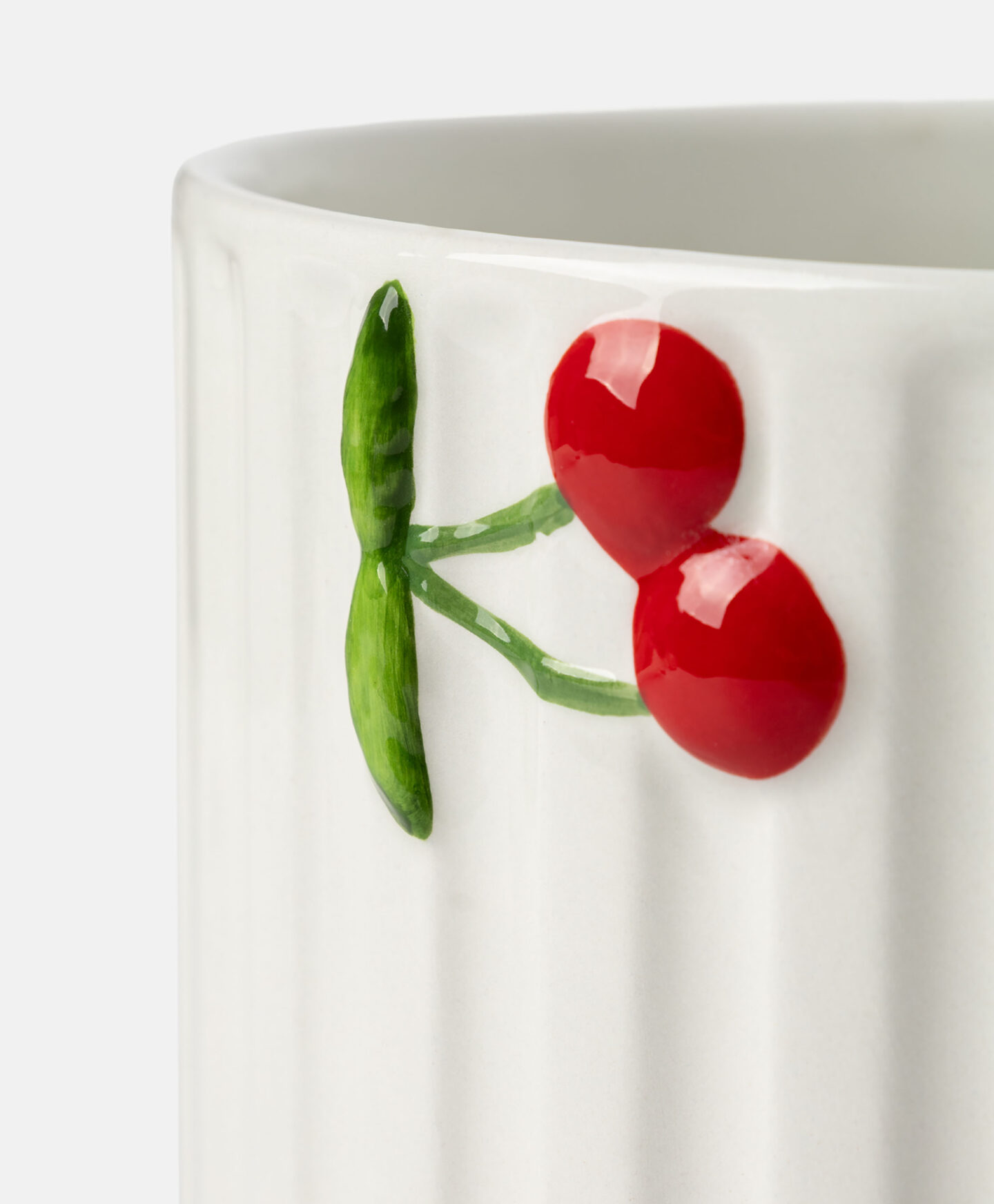 La maceta de dolomita con estampado de cerezas es ideal para dar vida y color a cualquier rincón. Su diseño en blanco con detalles frutales combina fácilmente con el verde de las plantas. Es resistente, duradera y fácil de limpiar.