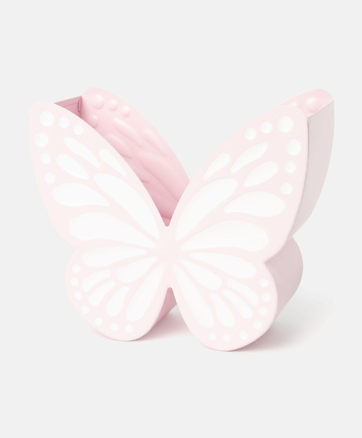 Maceta metálica con mariposa rosa