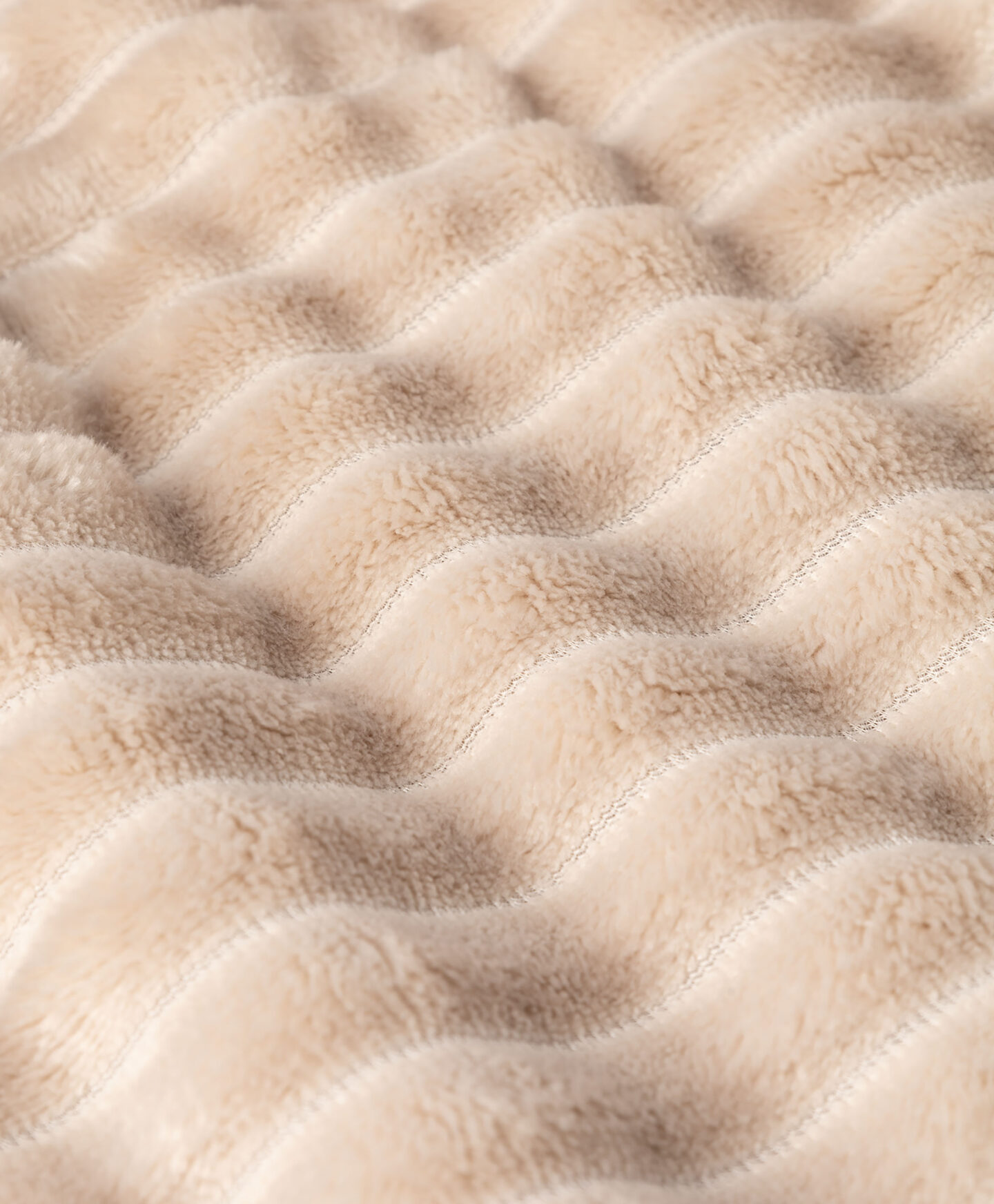 Manta color beige de punto a rayas, gruesa, suave y muy cálida. Ideal para decorar el sofá o el sillón y acompañar momentos de descanso como la siesta, la lectura o una noche de película. Su tono neutro encaja con facilidad en distintos estilos de decoración y la hace perfecta para el dormitorio, el salón o la habitación infantil. Puede combinarse con los cojines de la misma colección para lograr un conjunto armónico.
