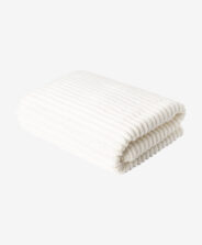 Manta blanca de punto a rayas, gruesa, suave y muy cálida. Ideal para decorar el sofá o el sillón y acompañar momentos de descanso como la siesta, la lectura o una noche de película. Su tono neutro encaja con facilidad en distintos estilos de decoración y la hace perfecta para el dormitorio, el salón o la habitación infantil. Puede combinarse con los cojines de la misma colección para lograr un conjunto armónico.