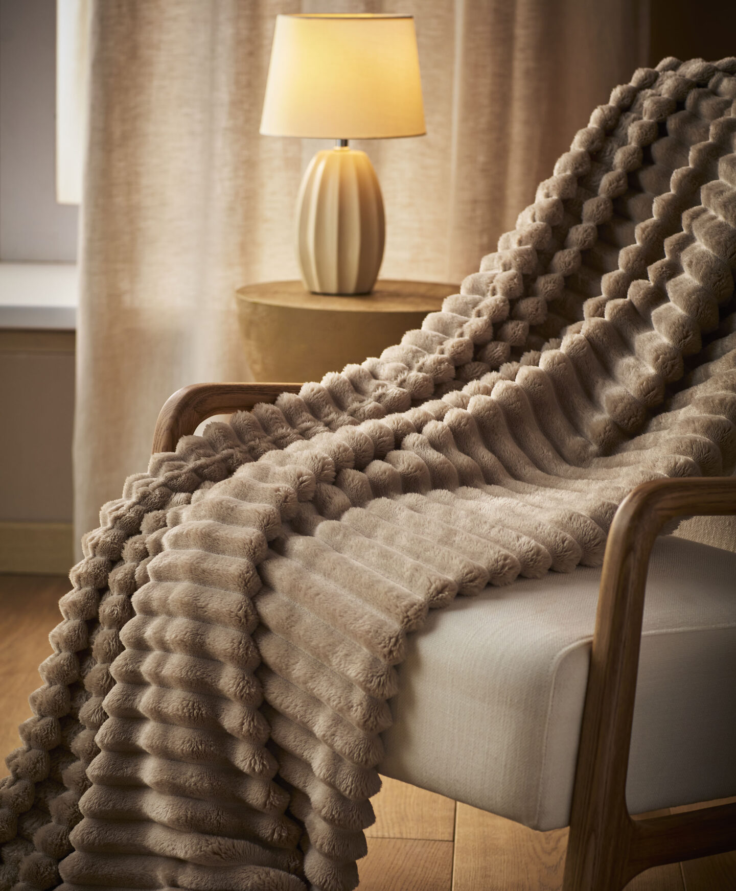 La manta marrón de rayas anchas es práctica y elegante. Puedes colocarla en el sillón, el sofá o la cama y disfrutar de su suavidad a cualquier hora del día. Te mantiene abrigado en una mañana en casa o en una tarde de lectura. Disponible en tres colores.