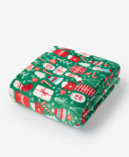 La manta verde navideña combina la funcionalidad diaria con un toque decorativo. Su estampado de casitas, gorros de Papá Noel y regalos crea un ambiente alegre y lleno de encanto. Perfecta para acompañar tardes de descanso o decorar el hogar en diciembre.