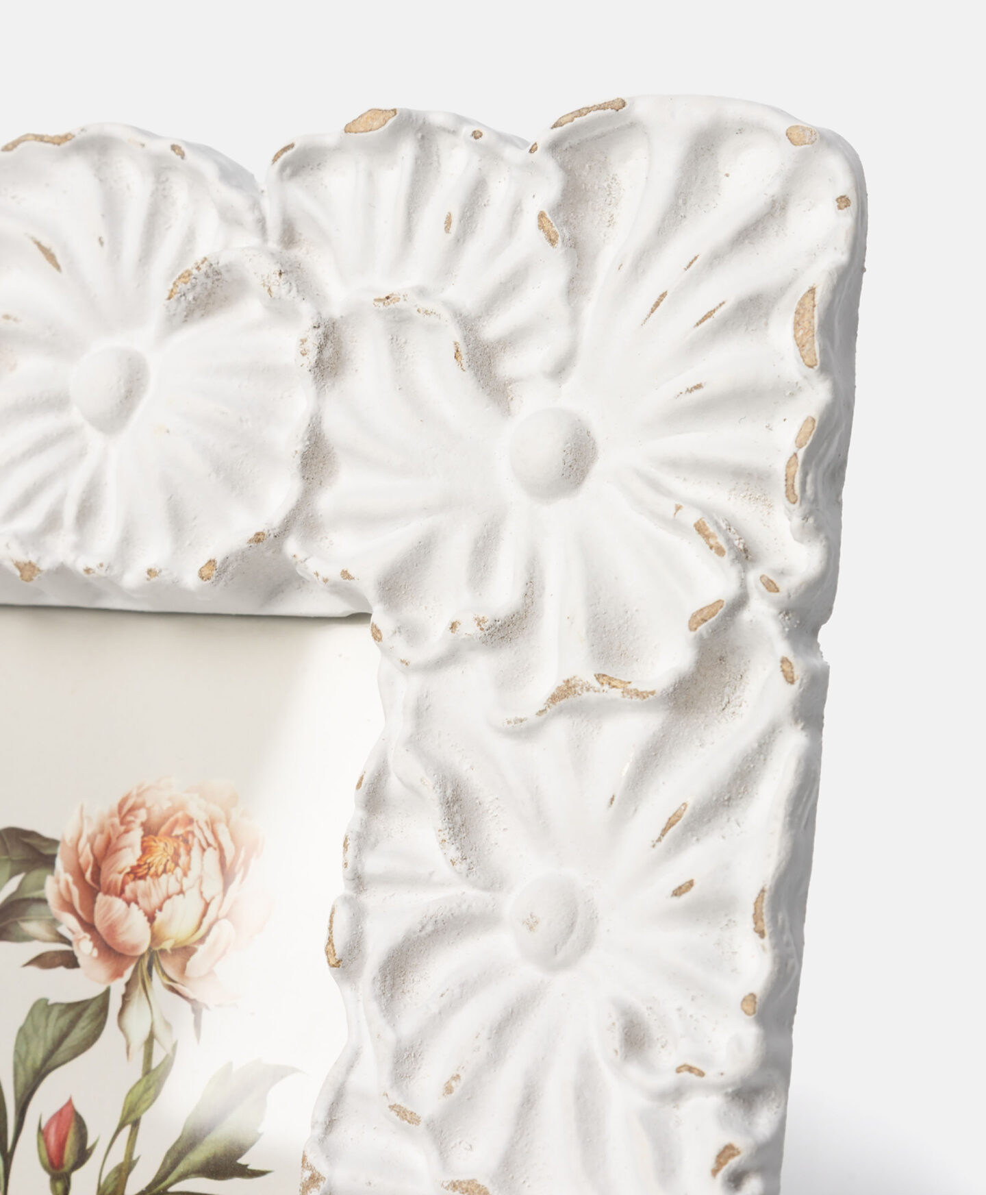 El marco de fotos con diseño floral es ideal para mostrar recuerdos especiales. El acompañamiento perfecto para retratos, celebraciones familiares o fotografías de viajes. El color blanco encaja en estilos clásicos y modernos, mientras que las flores aportan frescura y un aire primaveral. Es una opción ideal para regalar.