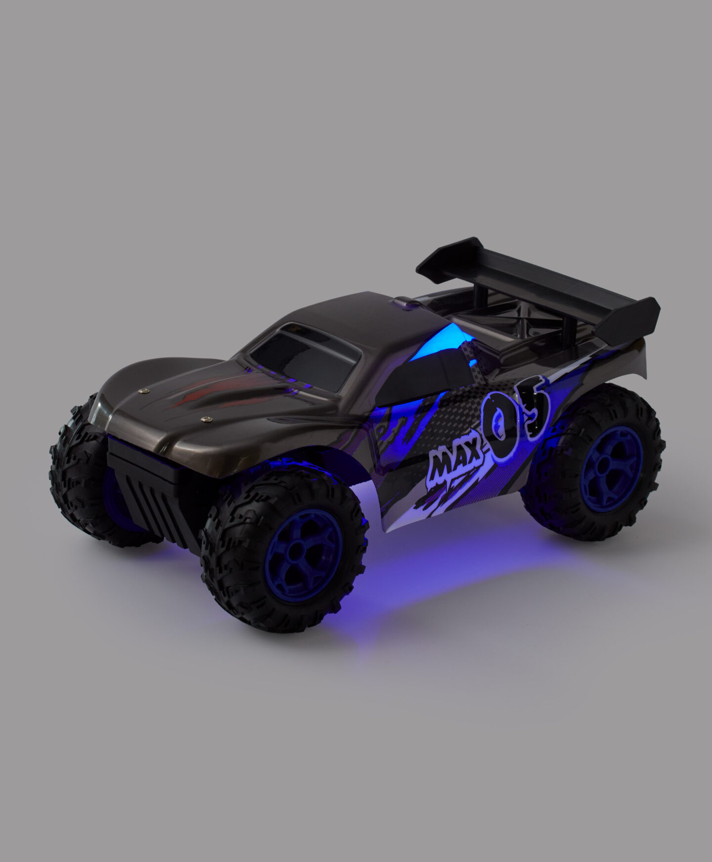 Este coche MAX 05 grande con ruedas ofrece una aventura llena de diversión. Sus grandes ruedas permiten moverse con facilidad por diferentes superficies, mientras que los elementos luminosos llaman la atención y crean un efecto WOW. El mando a distancia enseña a los pequeños precisión, coordinación y reflejos, además de desarrollar sus habilidades motoras. Ideal para jugar en casa o al aire libre. Recomendado para niños a partir de 4 años.