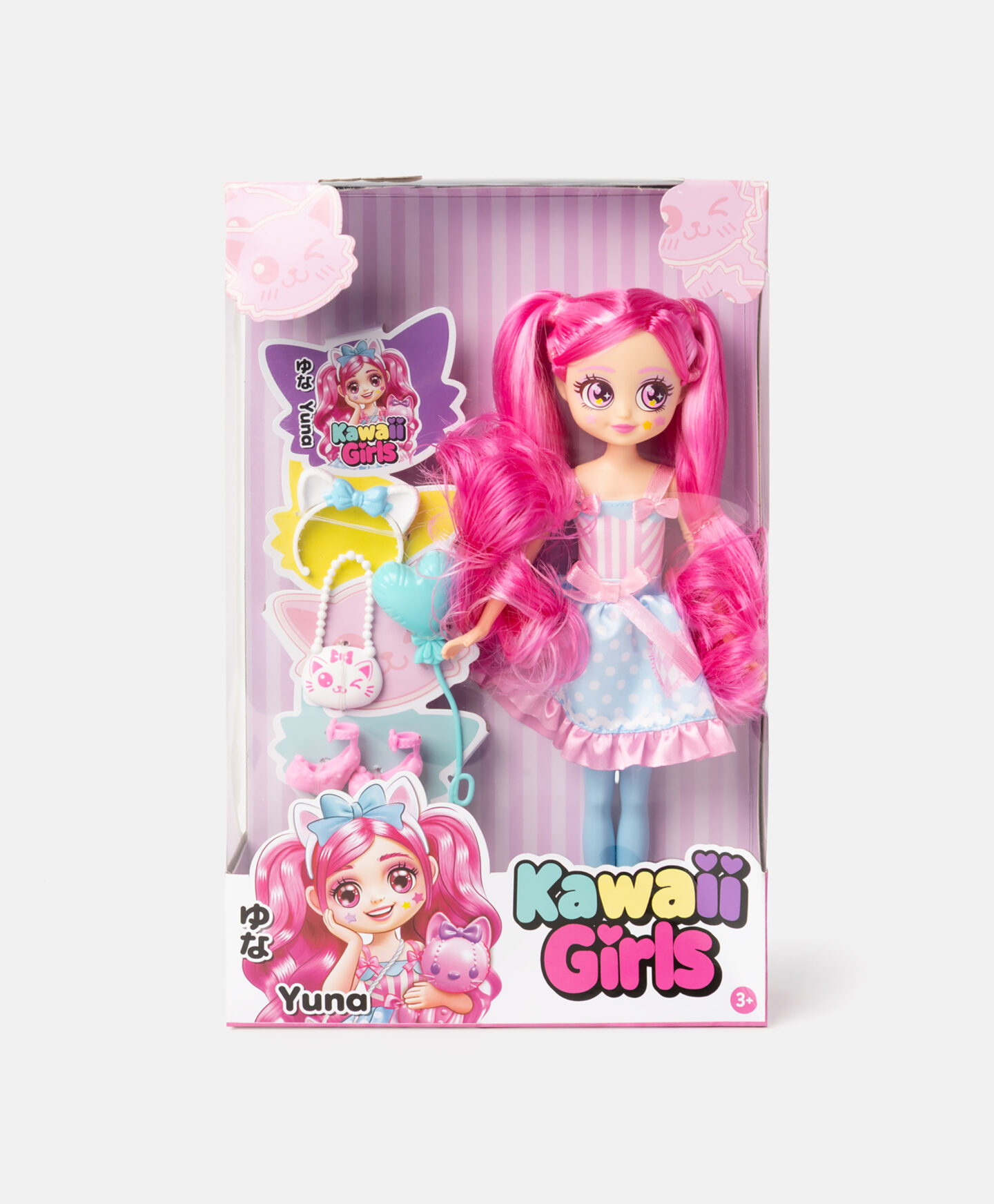Muñeca rosa Kawaii Girls perfecta para quienes disfrutan de la moda y el juego creativo. Incluye vestido y accesorios como diadema, bolso, zapatos y globo. Permite crear diferentes looks y escenarios de juego. Fomenta la imaginación. Recomendada a partir de 3 años.