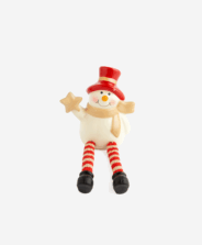 El muñeco de nieve de cerámica con patas colgantes es un detalle simpático que llena la casa de alegría. Su diseño alargado, con gorro y piernas a rayas, lo convierte en una figura única que destaca en cualquier estantería o ventana.