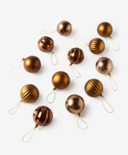El pack de 12 bolas marrones de plástico aporta un toque acogedor a la decoración. Su material resistente las hace perfectas para hogares con mucho movimiento.