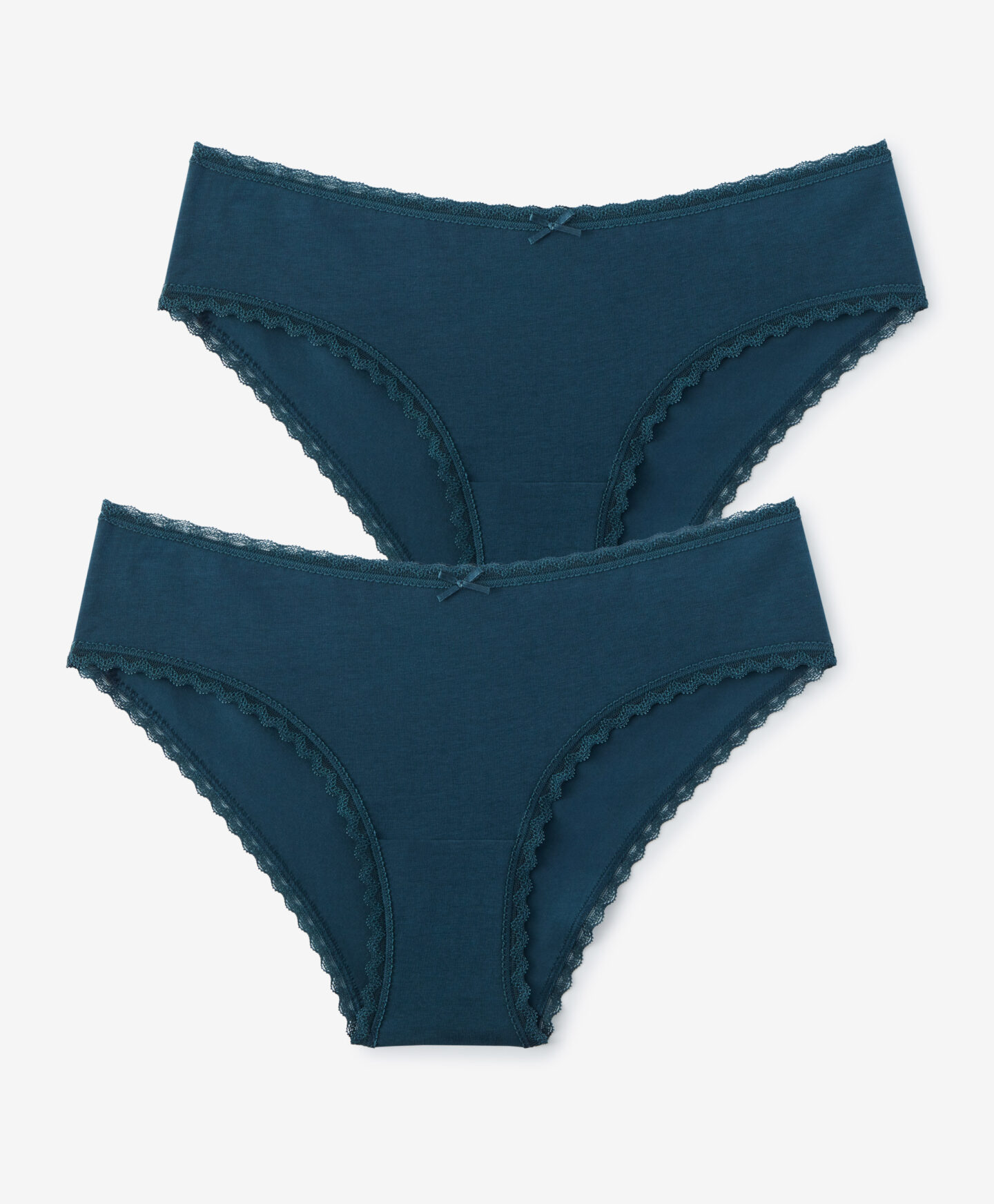 Este pack de 2 braguitas con encaje y alto contenido de algodón, combina comodidad y elegancia. Su tejido suave y transpirable ayuda a sentirse cómoda en el día a día y el delicado acabado de encaje añade encanto al conjunto interior. Un estilo versátil que puede llevarse en momentos cotidianos u ocasiones más especiales. Su diseño clásico permite combinar estas braguitas con diferentes estilos.