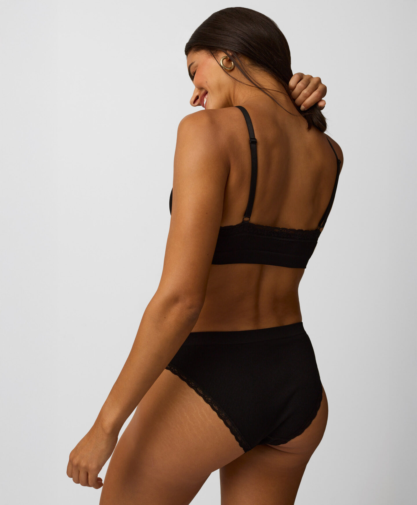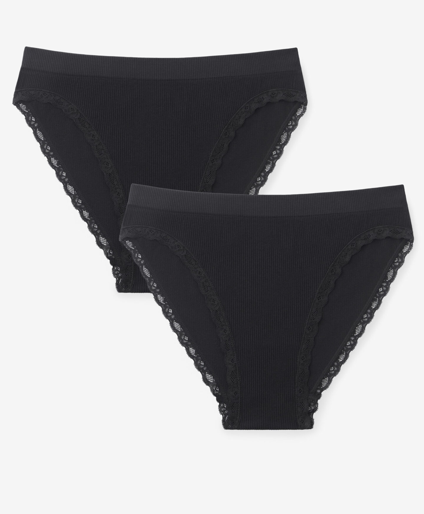 Este pack de 2 braguitas tipo bikini con encaje negro es perfecto para quienes buscan lencería romántica. El encaje delicado añade un toque sensual, pero también es ideal para el día a día. El corte estilo bikini ofrece buena cobertura y comodidad, realzando las curvas.
