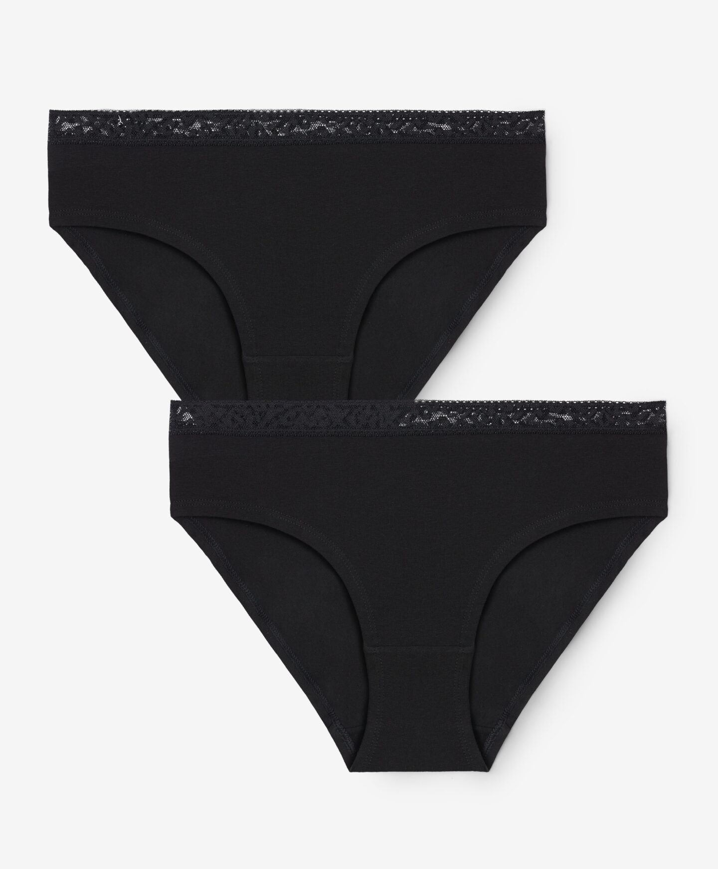 Pack de 2 braguitas tipo shorts con cintura de encaje que combinan comodidad y elegancia. Están confeccionadas con un tejido de alto contenido en algodón que aporta libertad de movimiento, mientras que la delicada cintura de encaje las diferencia de la ropa interior clásica. Perfectas tanto para el día a día como para ocasiones más especiales.