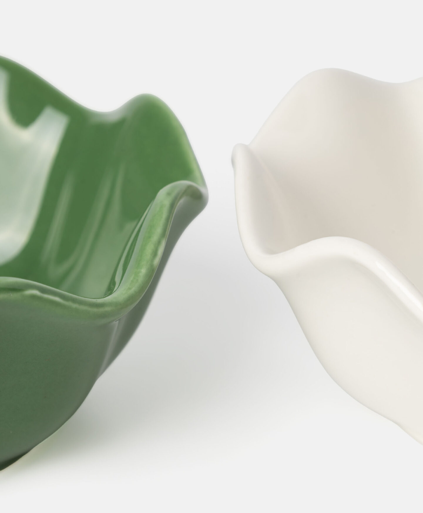 El pack de 2 cuencos de porcelana es perfecto para servir snacks con estilo en cualquier ocasión. La porcelana es resistente y fácil de limpiar. Sus tonos en verde y blanco destacan en la mesa. Ideales para el uso diario.