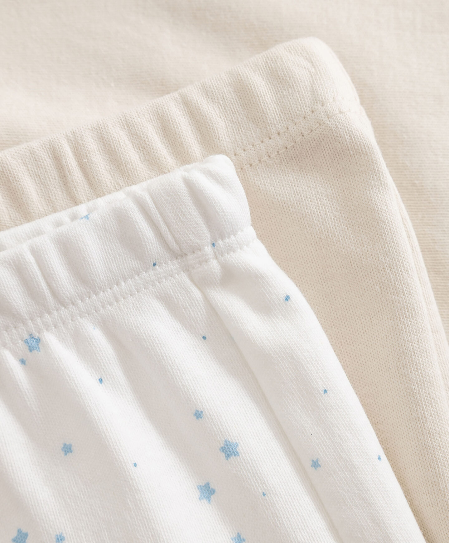 El pack de 2 leggings 100% algodón orgánico con pies es una opción práctica desde el inicio. El tejido suave se ajusta con comodidad para el descanso y el movimiento. Los dos diseños del pack permiten crear combinaciones diferentes. Combina a la perfección con los bodies de canalé de la colección.
