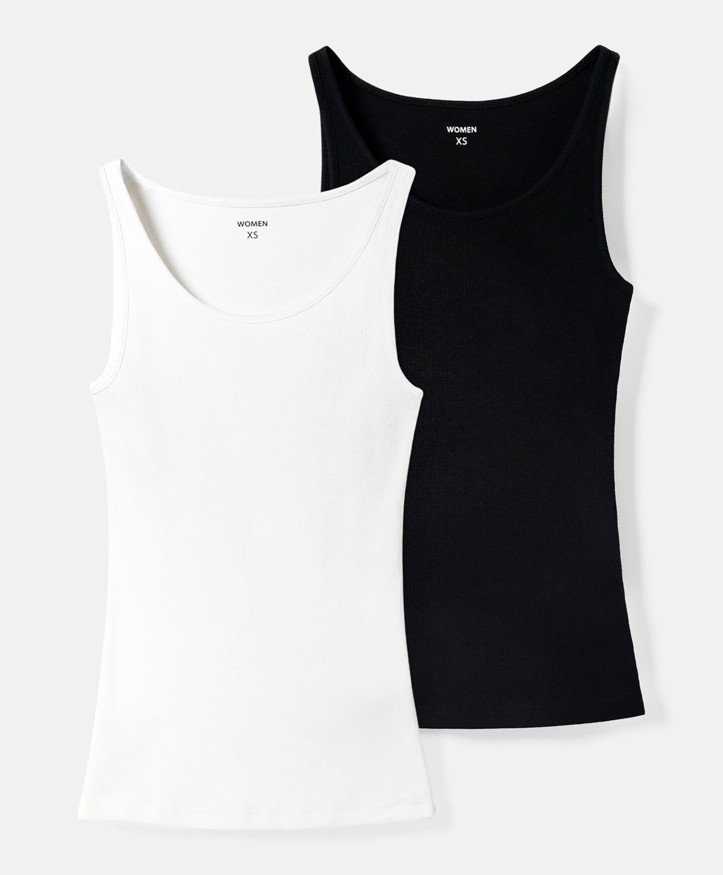 El pack de 2 tops a rayas completa el armario con un básico atemporal. La combinación en blanco y negro aporta versatilidad. El tejido elástico de rayas se adapta cómodamente y deja respirar la piel. Cada top combina con vaquero, pantalón corto o pantalón chino.