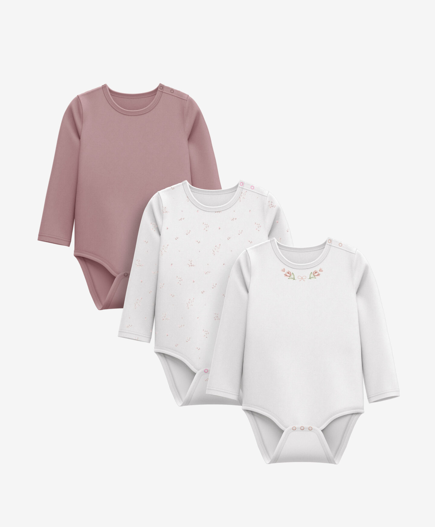 Este body 100% algodón viene en un pack de 3 y tiene divertidos estampados florales para los pequeños fans de la naturaleza. El estampado con flores alegra cualquier día y aporta un toque de dulzura. El body es de algodón, por lo que resulta suave al tacto, transpirable y cómodo. La apertura con botones a presión facilita los cambios de pañal y vestir al peque rápidamente. También está disponible en otros estampados.