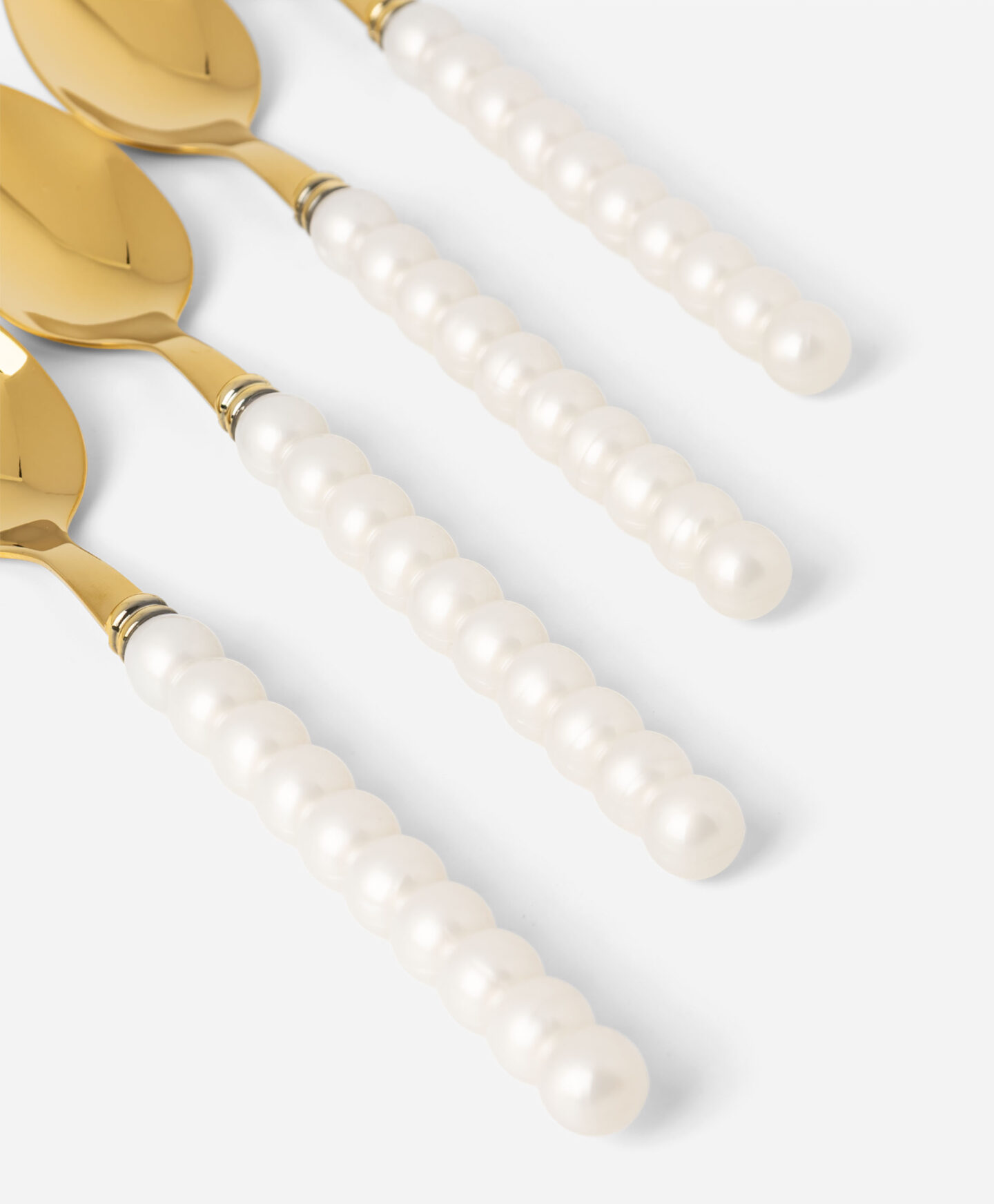 El pack de 4 cucharillas con perlas aporta elegancia a cualquier momento del té. Sus mangos decorados con delicadas perlas añaden un toque refinado a la mesa. Son ideales tanto para el uso diario como para ocasiones especiales.