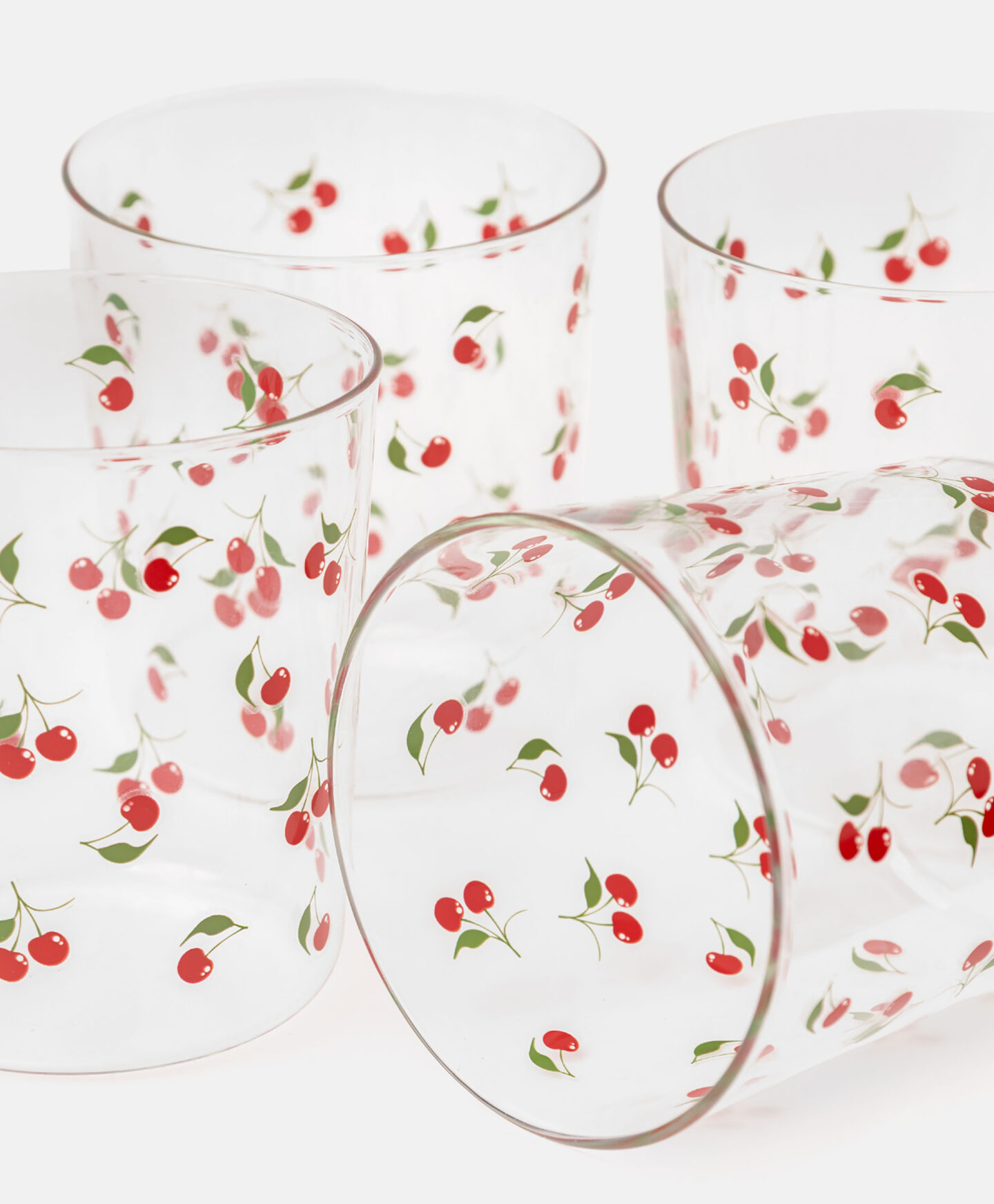 El pack de 4 vasos con estampado de cerezas es ideal para llenar de color cualquier sobremesa. Están fabricados en vidrio de borosilicato, resistente y fácil de limpiar. Son perfectos para servir todo tipo de bebidas. El diseño frutal aporta un toque alegre a cada momento compartido.