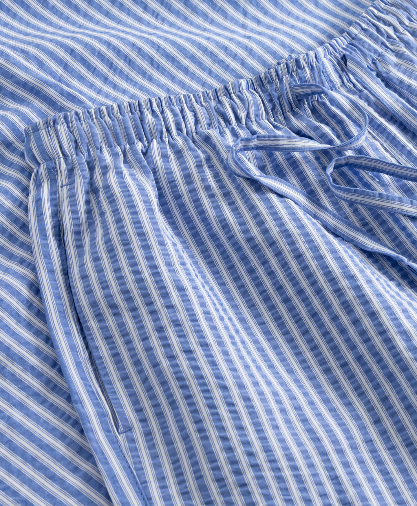 Este pantalón es una prenda clave para los looks de primavera. Las perneras anchas aportan ligereza y transpirabilidad. La cintura elástica ancha ofrece comodidad sin presión en el abdomen. Los cordones permiten ajustar el pantalón fácilmente. Combina muy bien con una camiseta blanca o con una camisa más elegante. Existe camisa a rayas a juego.