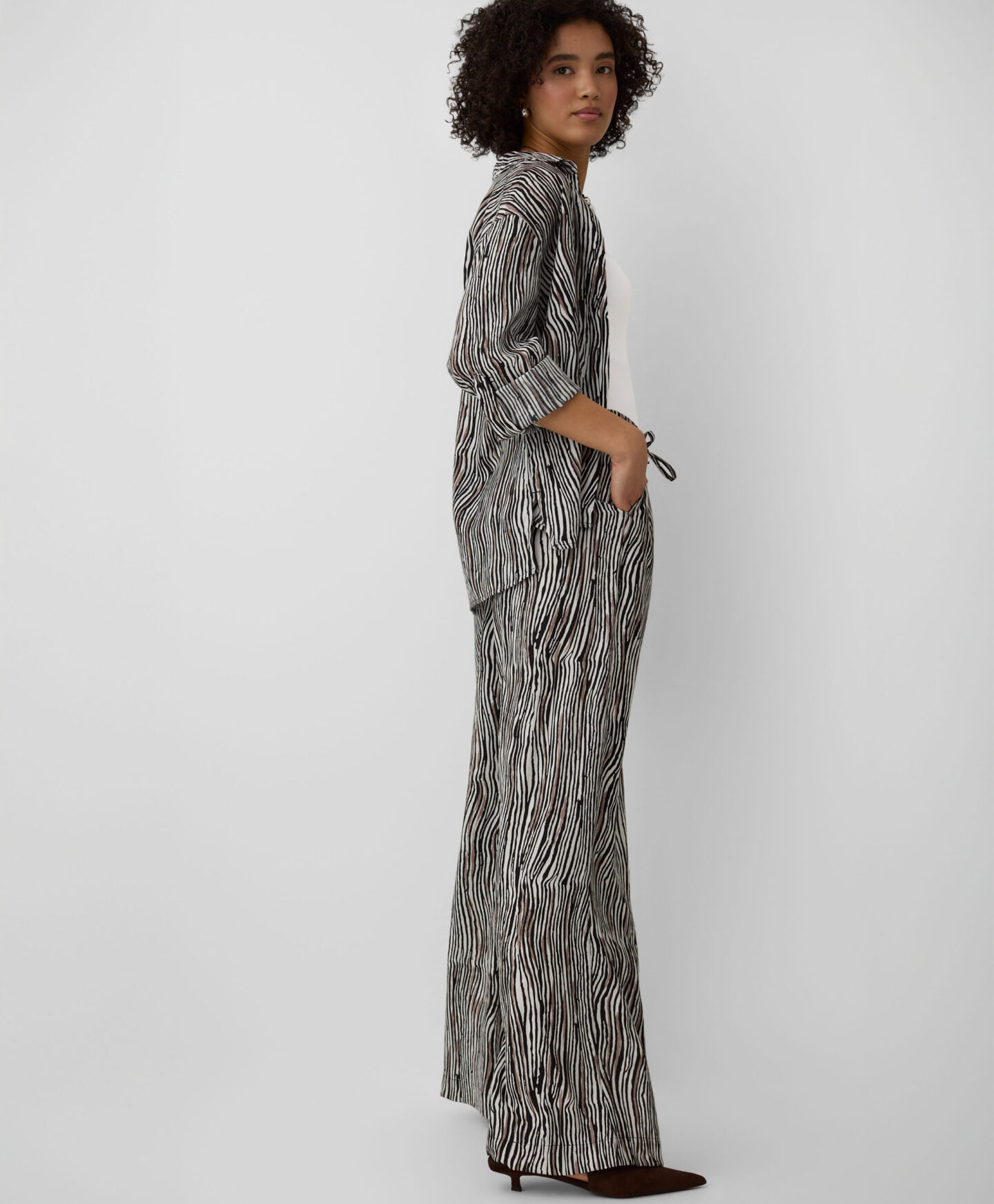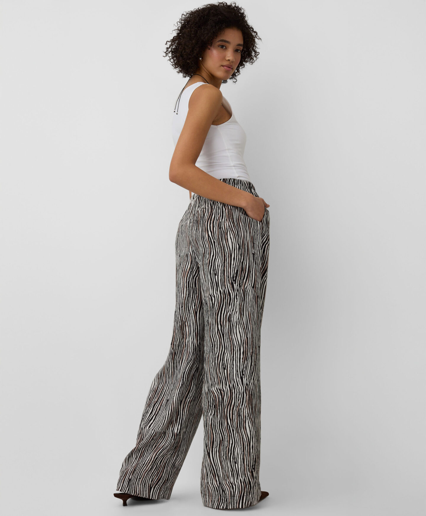 El pantalón con alto contenido de viscosa es tendencia esta temporada. Es ligero, transpirable y su estampado animal aporta personalidad al look. Combina perfectamente con blusa, camisa o top liso.