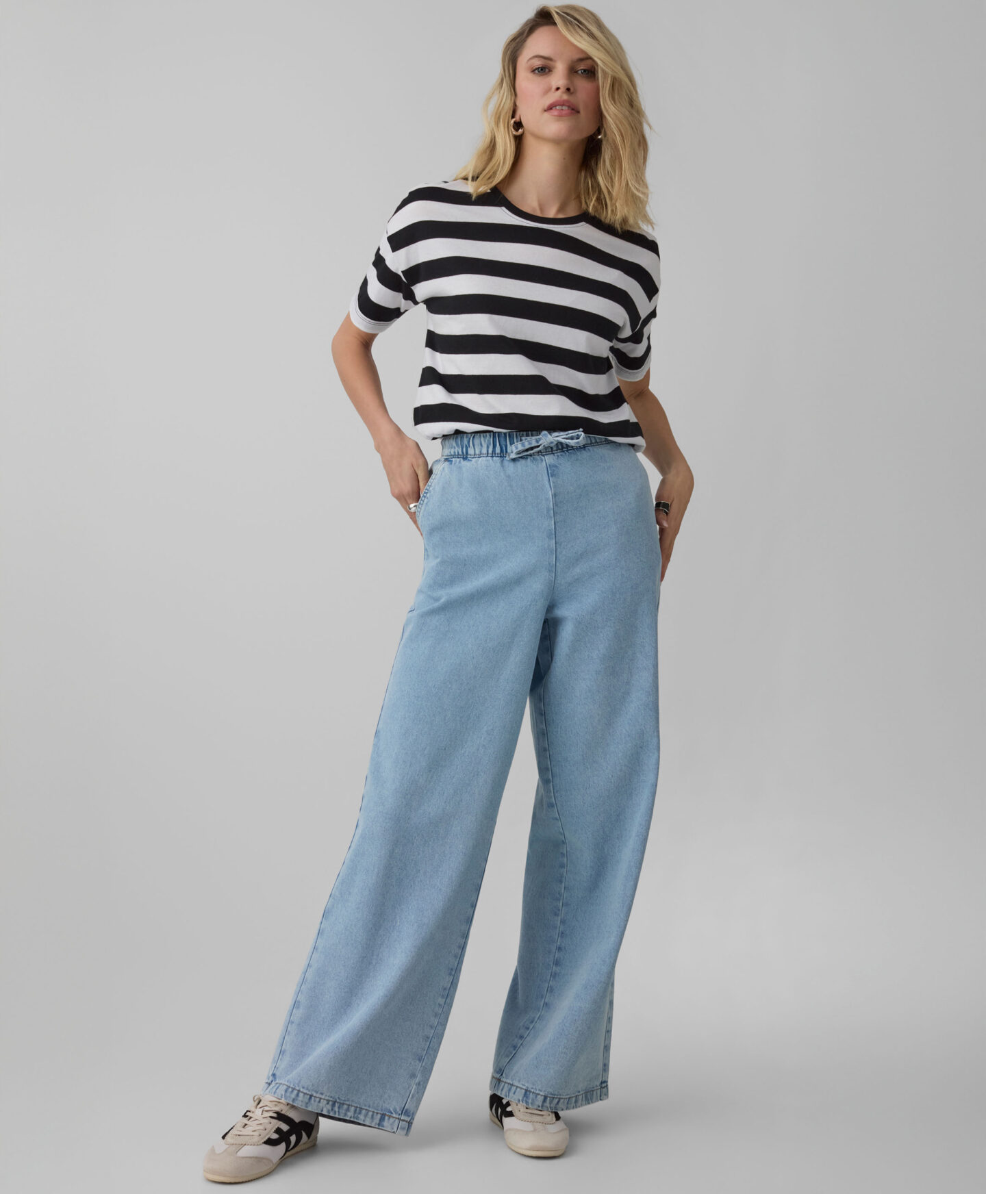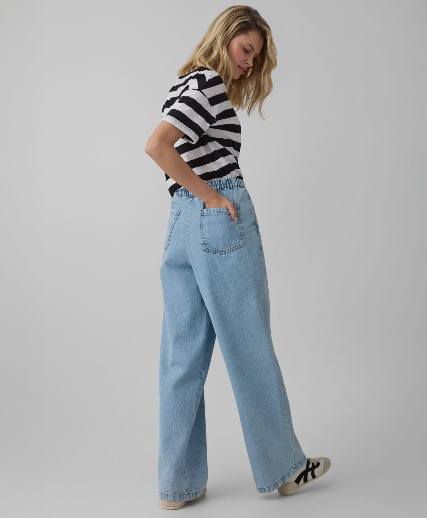 El pantalón con cintura elástica y pernera ancha ofrece comodidad y libertad de movimiento. Su diseño actual combina fácilmente con camisetas o camisas y es ideal para el día a día o momentos de relax.