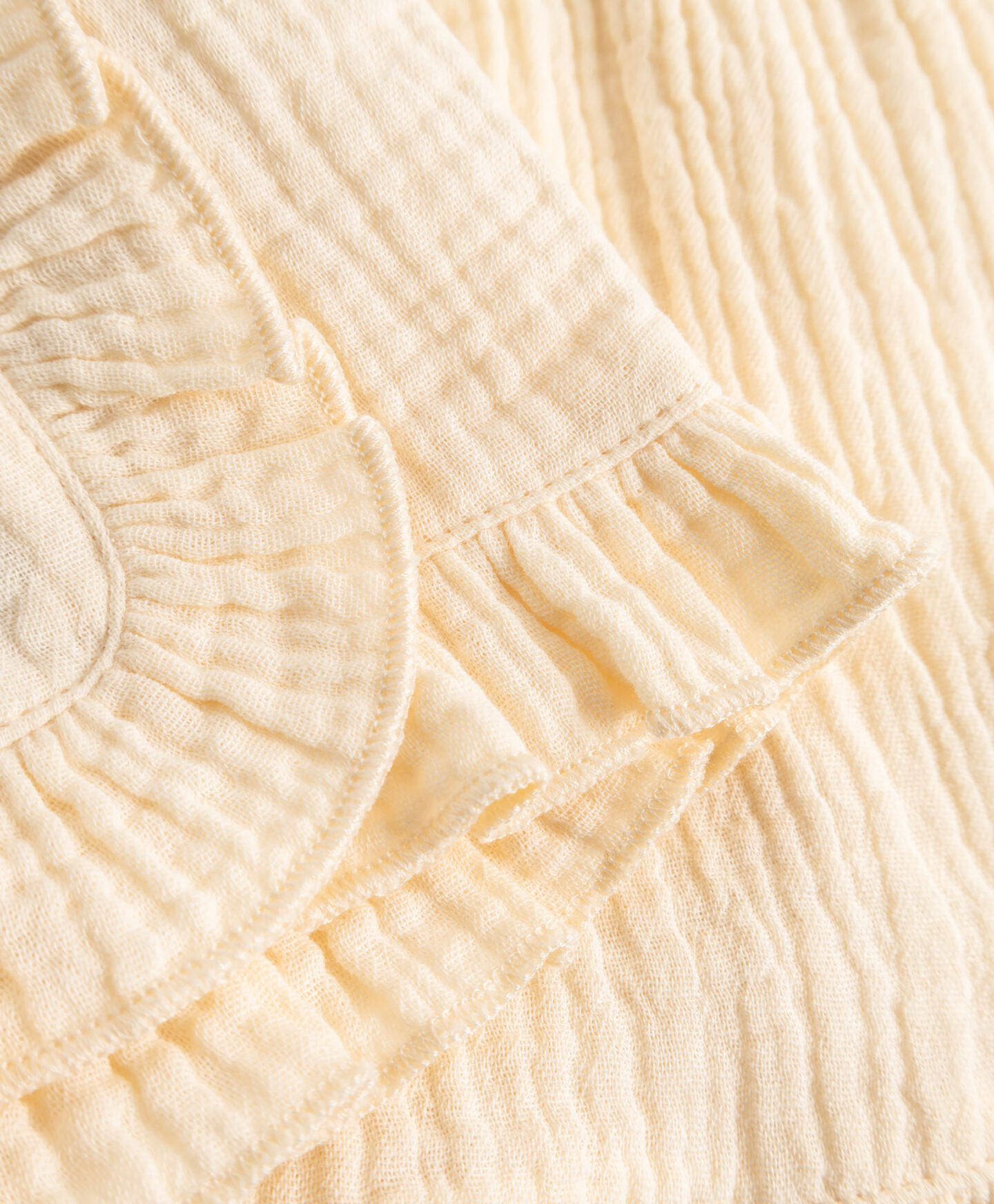 El pantalón corto de bebé 100% algodón combina encanto y funcionalidad. El tejido de muselina es suave y transpirable. Los volantes aportan un diseño delicado y especial. La cintura elástica y las perneras amplias garantizan comodidad y libertad de movimiento.
