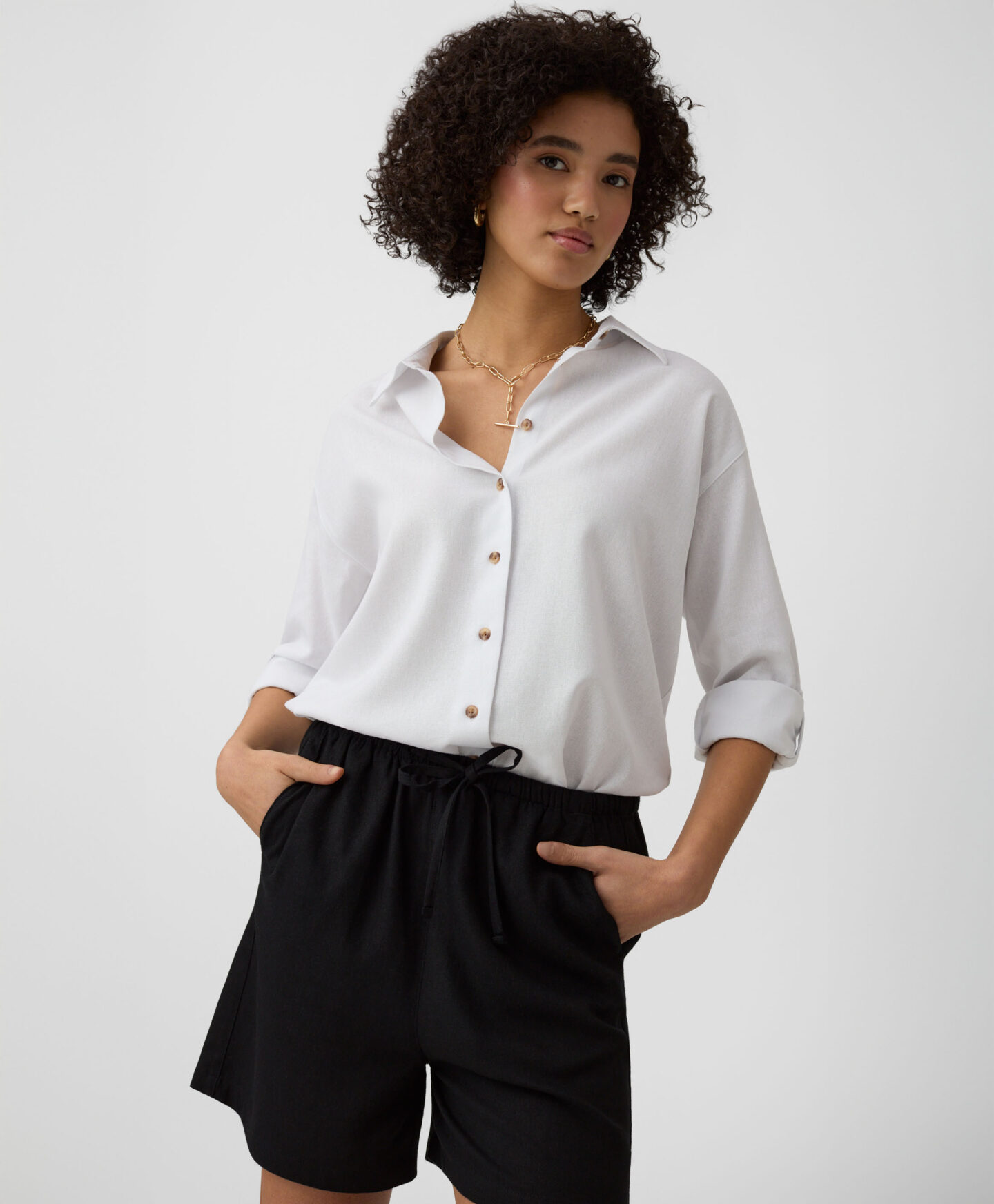 El pantalón corto en color versátil es un básico imprescindible en el armario. Es ligero, transpirable y cómodo al tacto. Su tono atemporal permite crear múltiples looks combinándolo con camiseta, blusa o top.