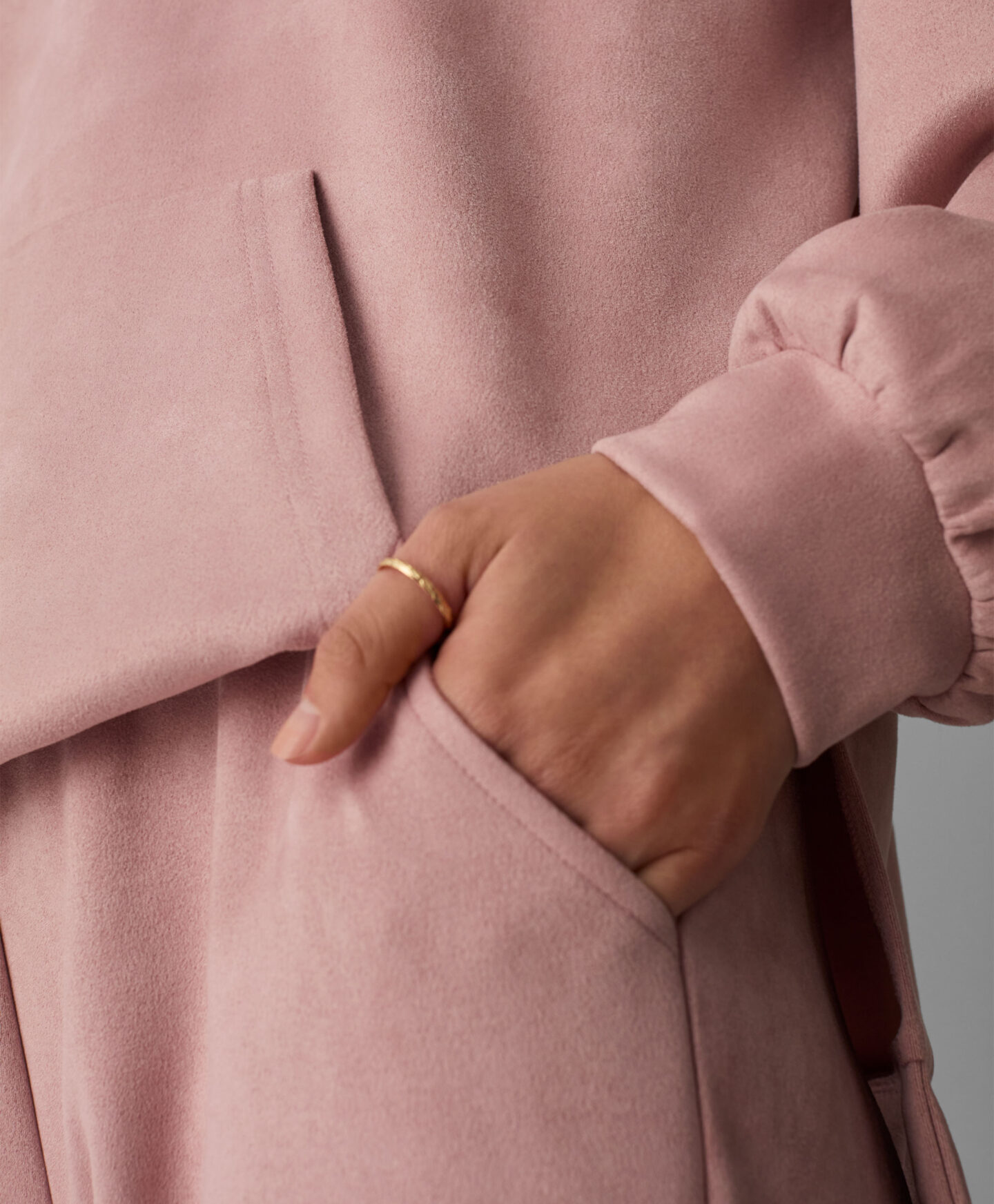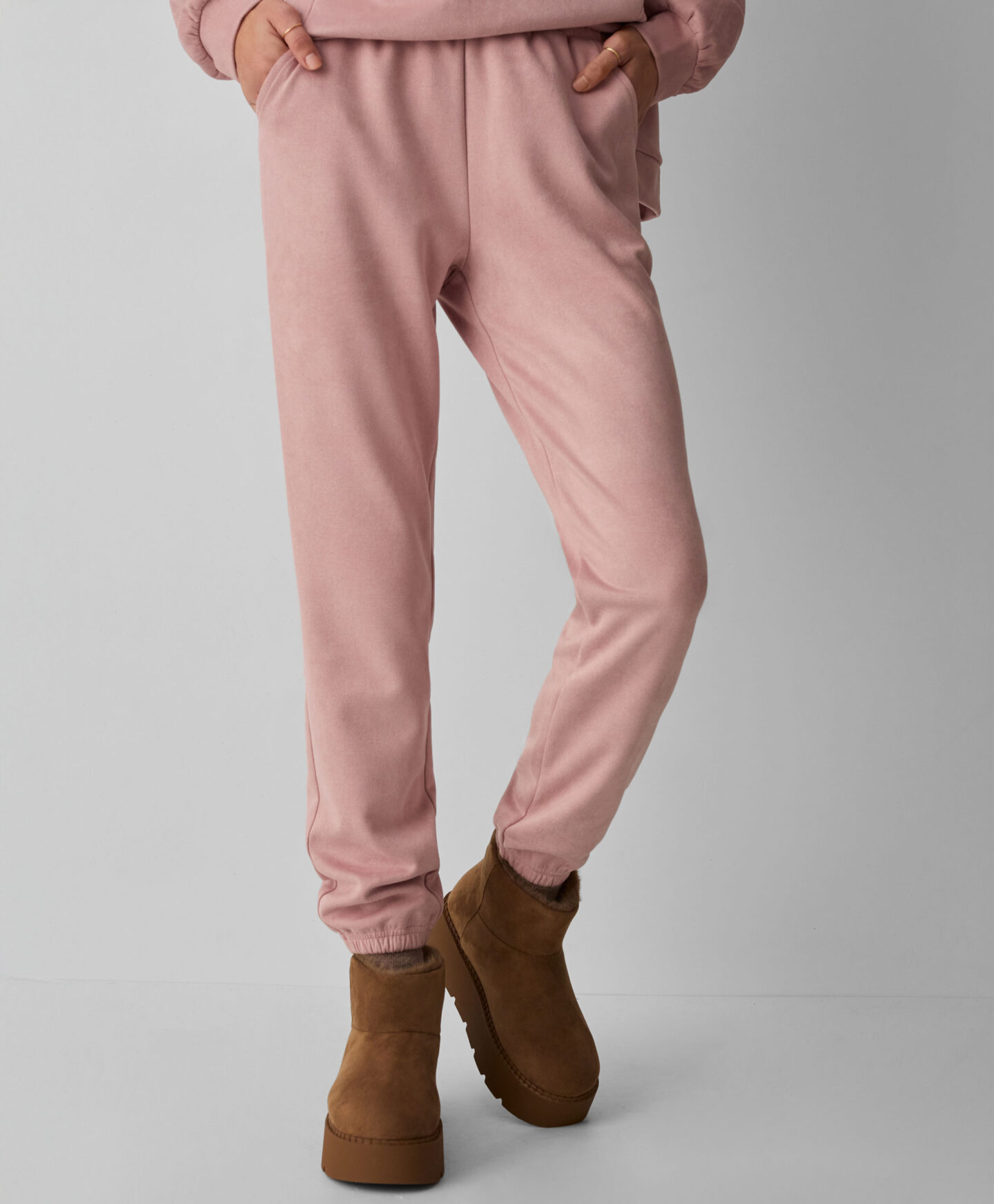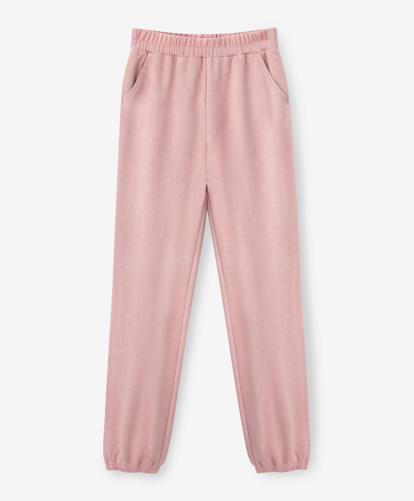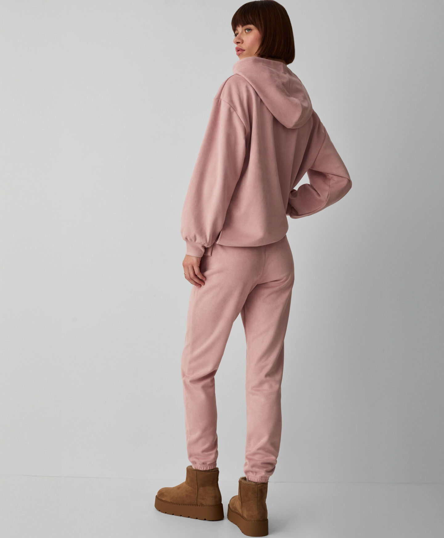 El pantalón rosa de ante es una opción cómoda y con estilo para el día a día. Su tejido suave y agradable al tacto lo hace perfecto para paseos otoñales. El tono empolvado de rosa combina a la perfección con la sudadera con capucha de la colección. Disponible en varios estampados.
