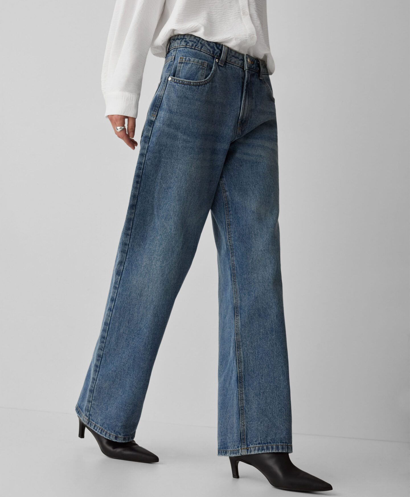 El pantalón vaquero de algodón con pernera ancha es una de las tendencias de la temporada. Queda muy bien con un top ajustado o con prendas más sueltas. Su color clásico permite combinarlo fácilmente con muchas piezas del armario. Es cómodo, versátil y fácil de cuidar.