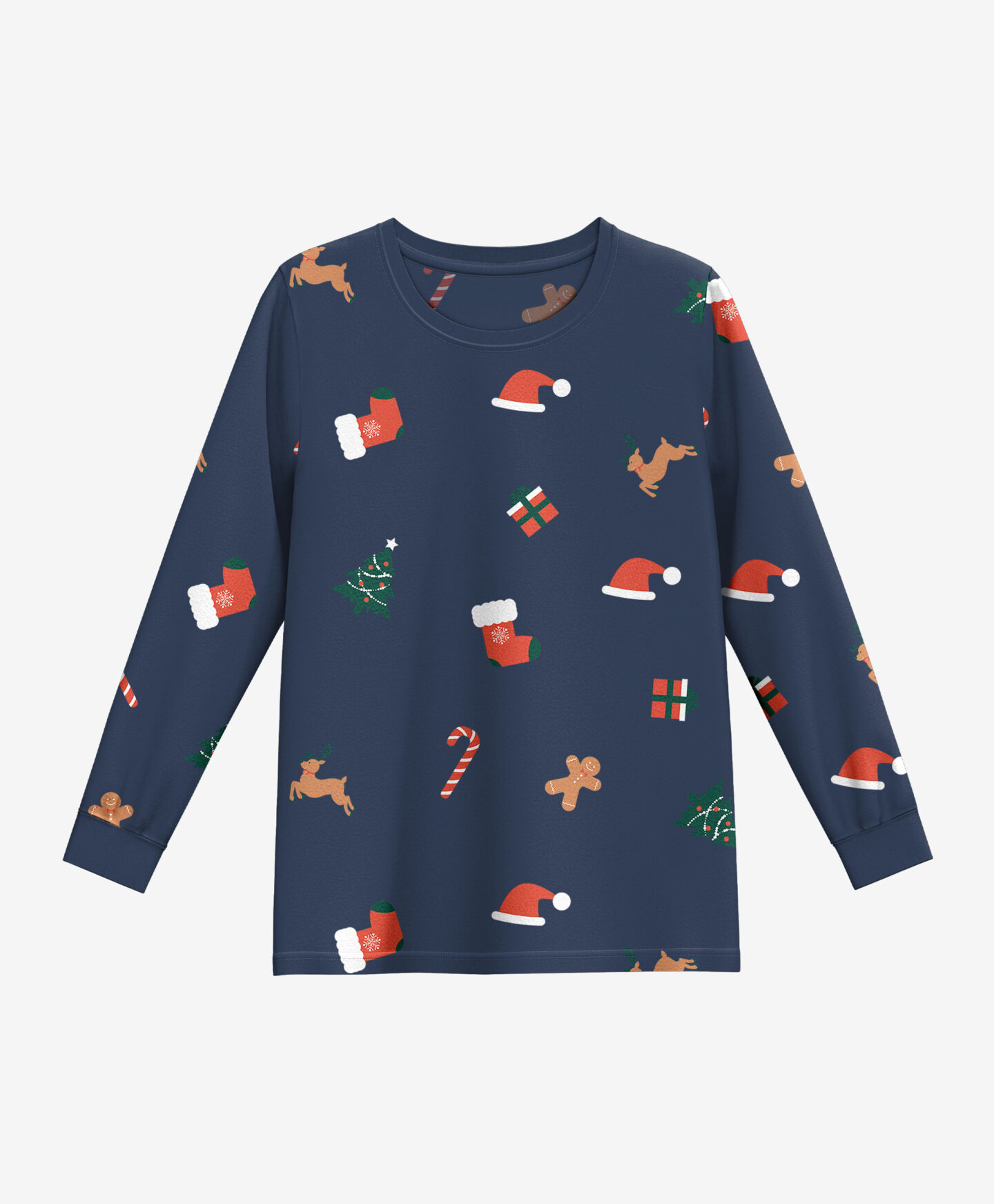 El pijama 100% algodón navideño es perfecto para las noches frías. Su camiseta de manga larga y pantalón, garantiza abrigo y comodidad. Su tejido suave y transpirable cuida la piel y su diseño festivo llena el hogar de alegría.