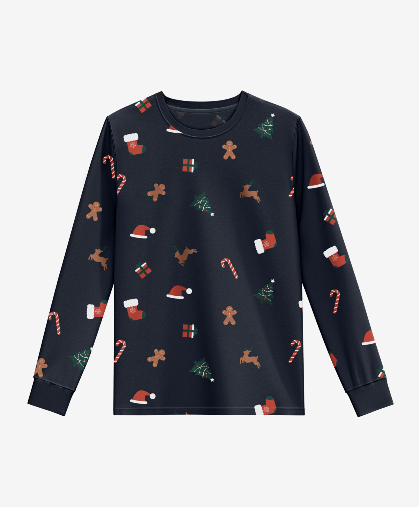 El pijama 100% algodón con estampado navideño enamora por su suavidad y diseño. Este encantador conjunto de camiseta de manga larga y pantalón está diseñado para los pequeños soñadores. El estampado navideño añade magia a las noches de invierno.