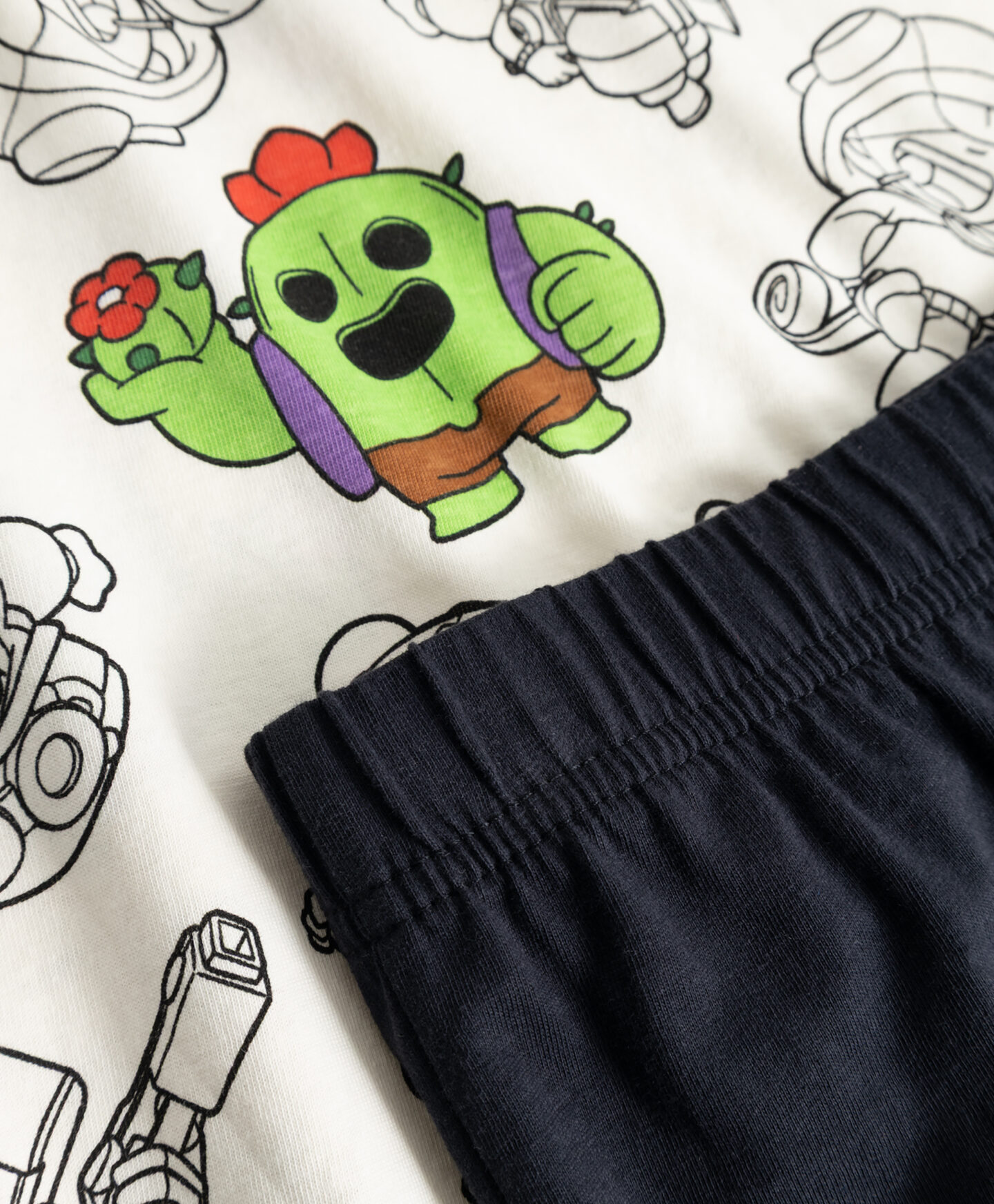 Pijama 100% algodón de Brawl Stars perfecto para fans del juego más icónico. Incluye camiseta y pantalón corto, por lo que es ideal para noches cálidas. El tejido es agradable al tacto y acompaña el descanso con suavidad. El corte clásico garantiza libertad de movimiento. Disponible en varios diseños.