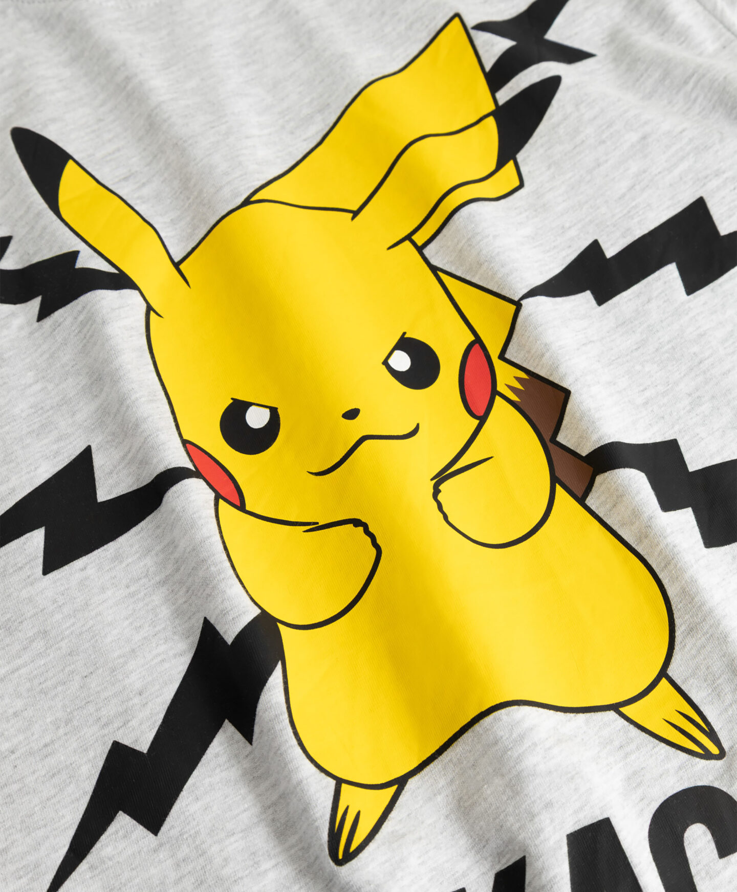 El pijama 100% algodón de Pokémon destaca por su tejido suave y transpirable. La camiseta de manga corta con Pikachu aporta un toque divertido, mientras que el pantalón largo estampado ofrece calidez y libertad de movimiento.