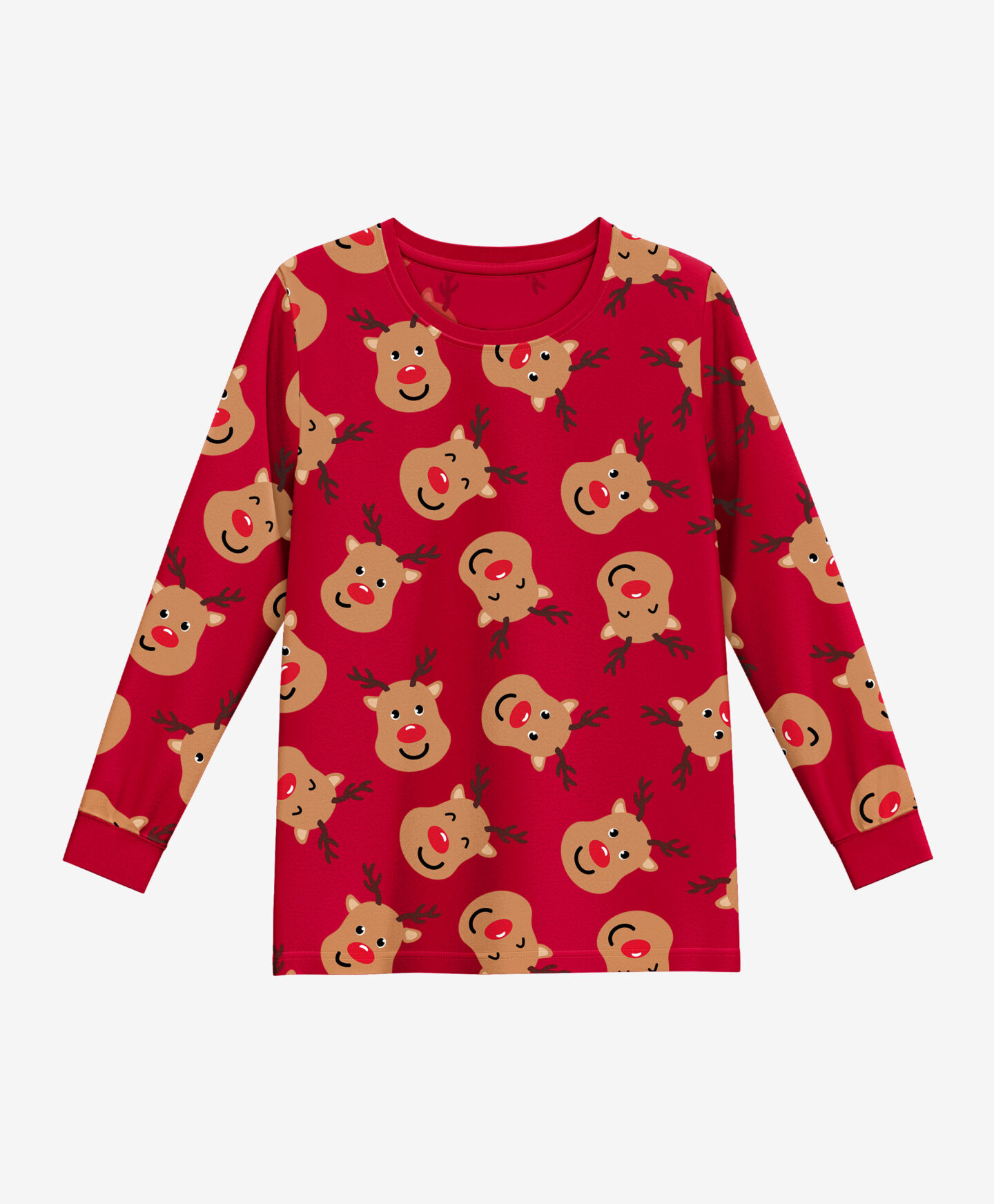 El pijama con estampado de renos 100% algodón incluye una camiseta de manga larga y un pantalón. Es perfecto para las noches frescas, ofreciendo calidez y confort. El tejido suave y transpirable cuida la piel y el estampado navideño añade un toque alegre al hogar.