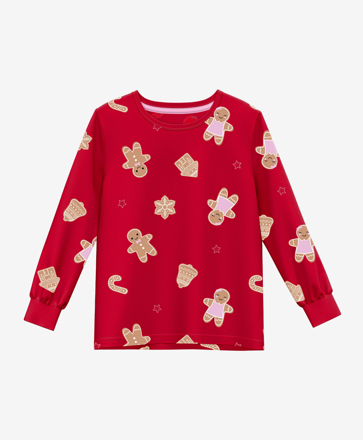 El pijama con muñeco de jengibre 100% algodón es ideal para las noches frías. Incluye camiseta de manga larga y pantalón. Su tejido suave y transpirable garantiza comodidad y su diseño festivo llena el hogar de alegría.