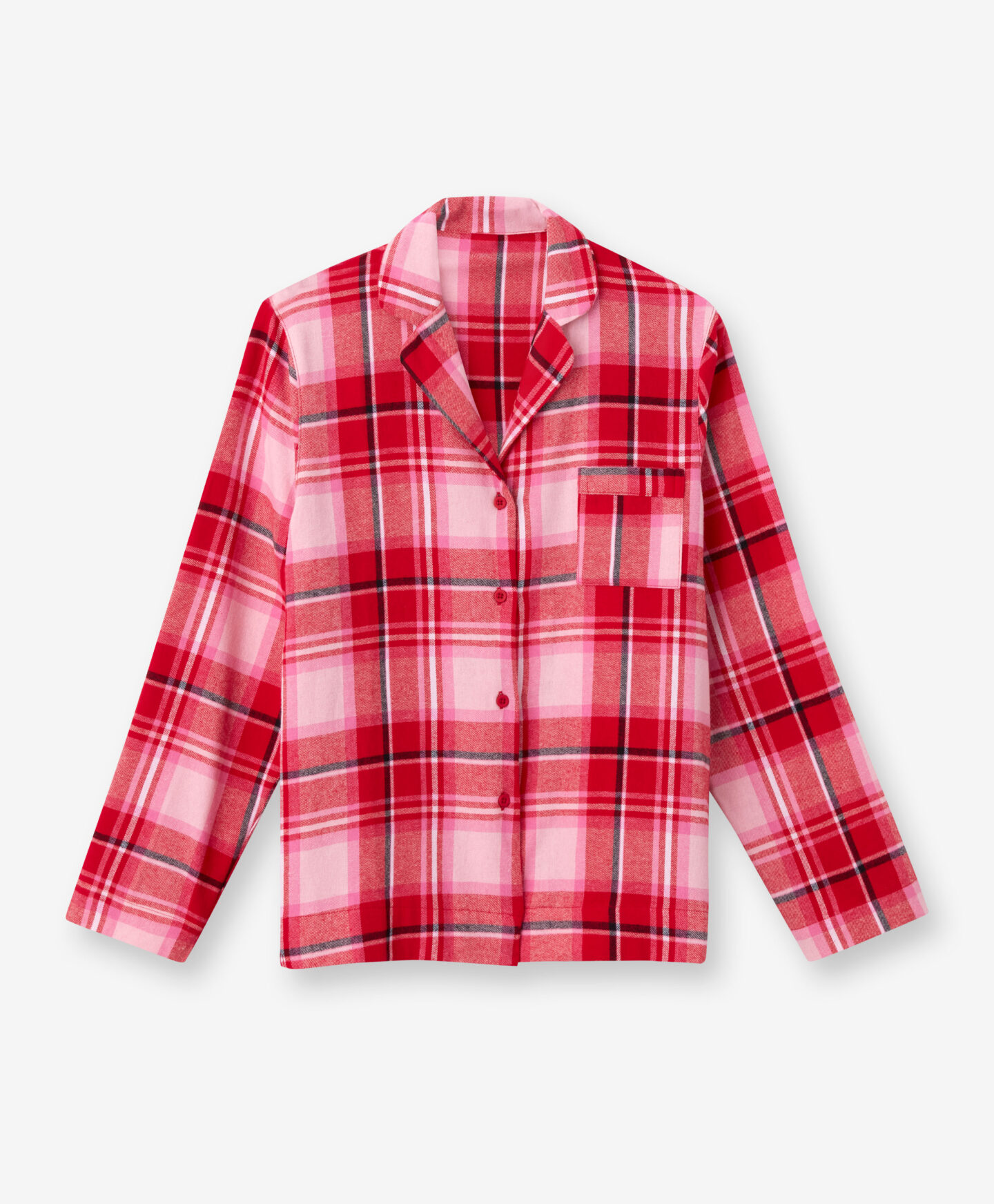 El pijama de cuadros 100% algodón es cálido, suave al tacto y agradable con la piel. Perfecto para las noches de invierno en casa, asegura un descanso cómodo. Su clásico estampado de cuadros y colores festivos lo convierten en una idea de regalo ideal.