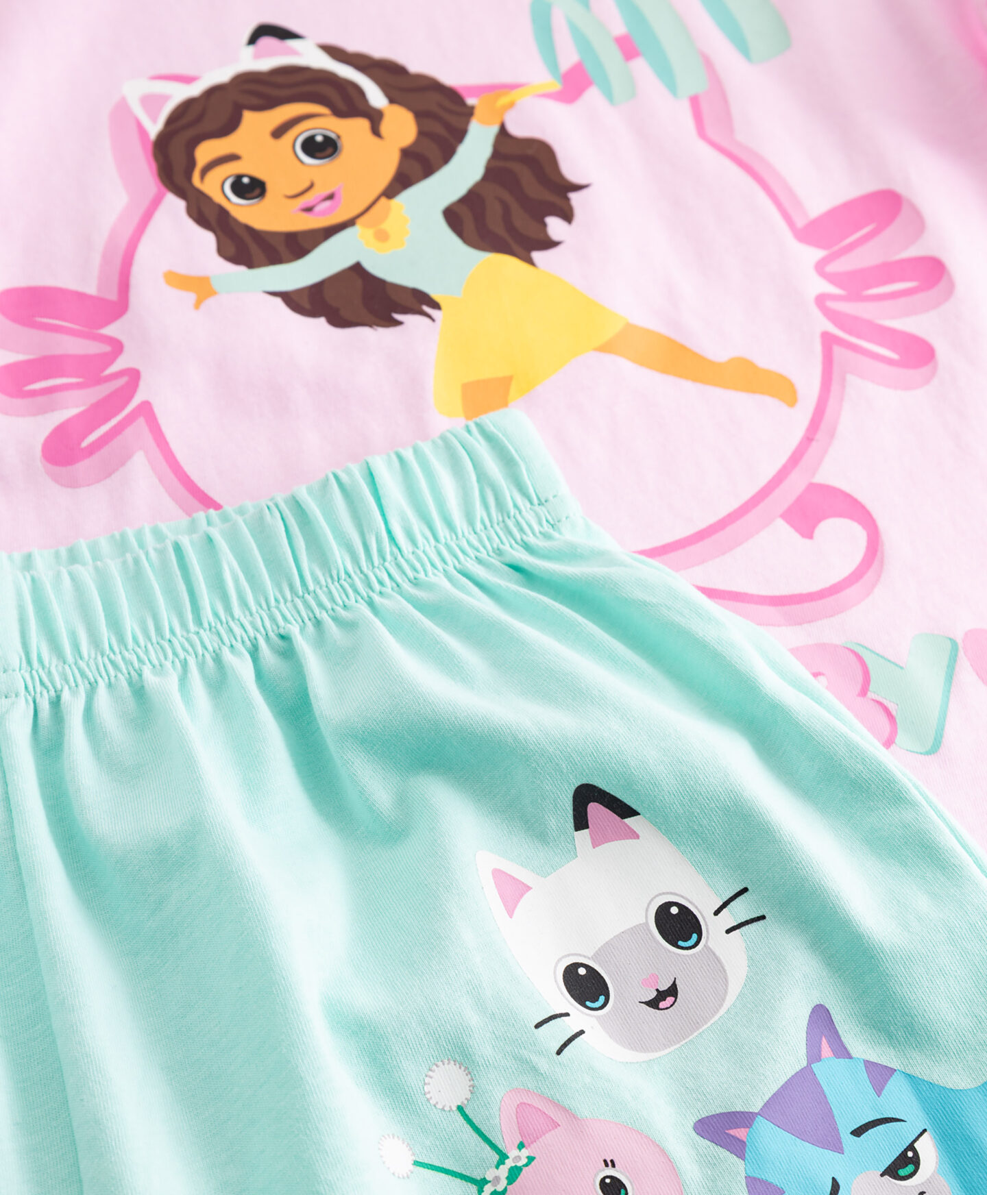 El pijama de Gabby’s Dollhouse 100% algodón es perfecto para disfrutar de noches cómodas con un toque divertido. El pack incluye camiseta con volantes en las mangas y pantalón corto. El gráfico del personaje favorito encanta a cualquier peque. El tejido es suave, transpirable y agradable al tacto, ideal para la piel sensible. Su corte clásico aporta libertad de movimiento.