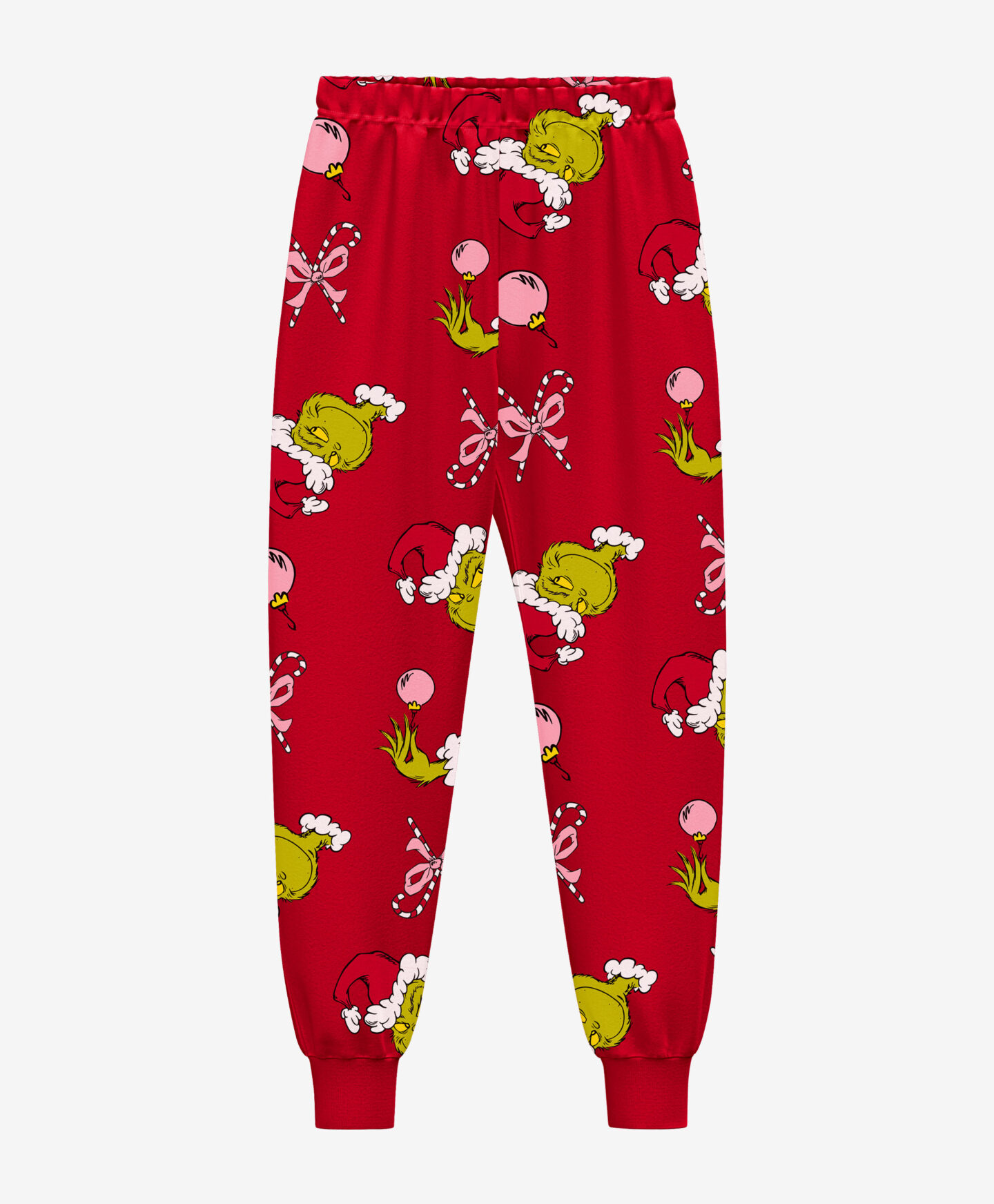El Pijama de Grinch 100% algodón aporta alegría a las noches navideñas. Su tejido suave y transpirable garantiza comodidad, mientras que el diseño con el personaje llena el ambiente de espíritu festivo.