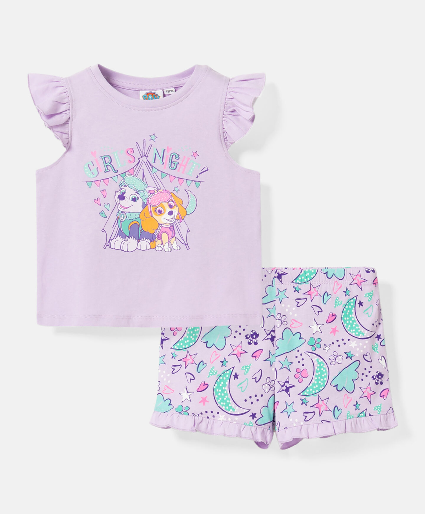 El pijama de La Patrulla Canina 100% algodón es perfecto para descansar con total comodidad. El pack incluye camiseta con volantes en las mangas y pantalón corto. El gráfico de los personajes favoritos añade un toque divertido. El tejido es suave, transpirable y agradable al tacto. Su corte permite libertad de movimiento.